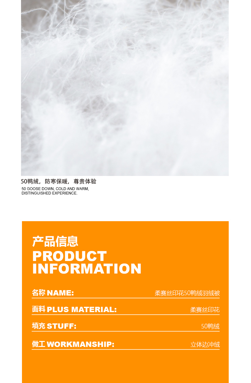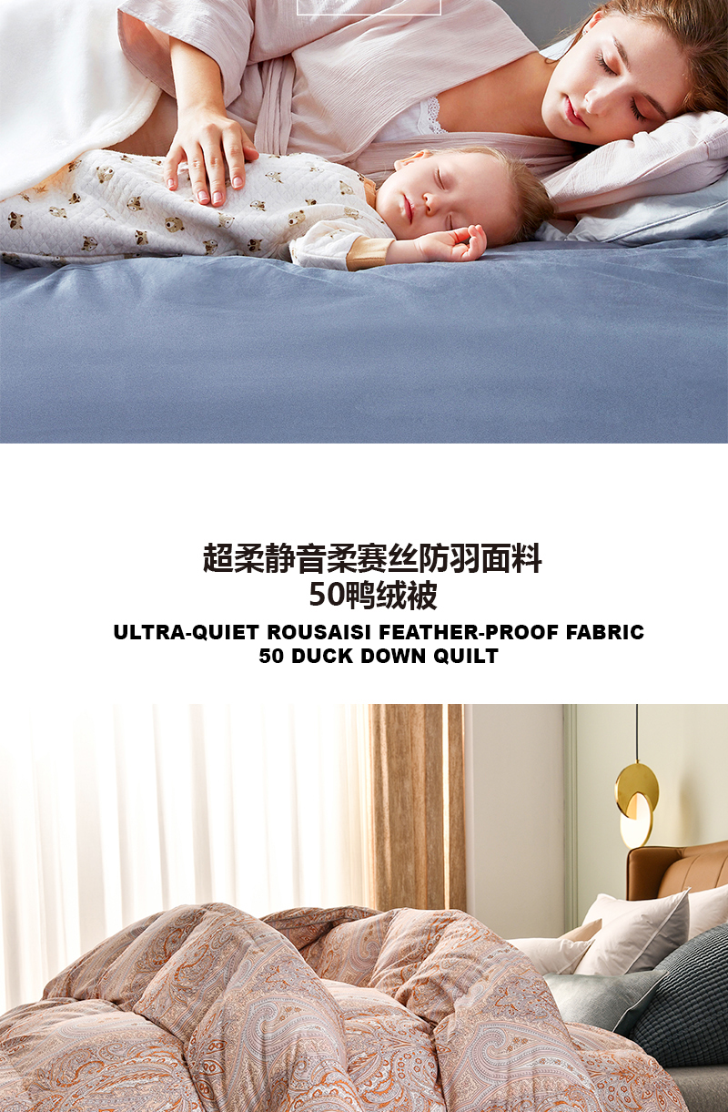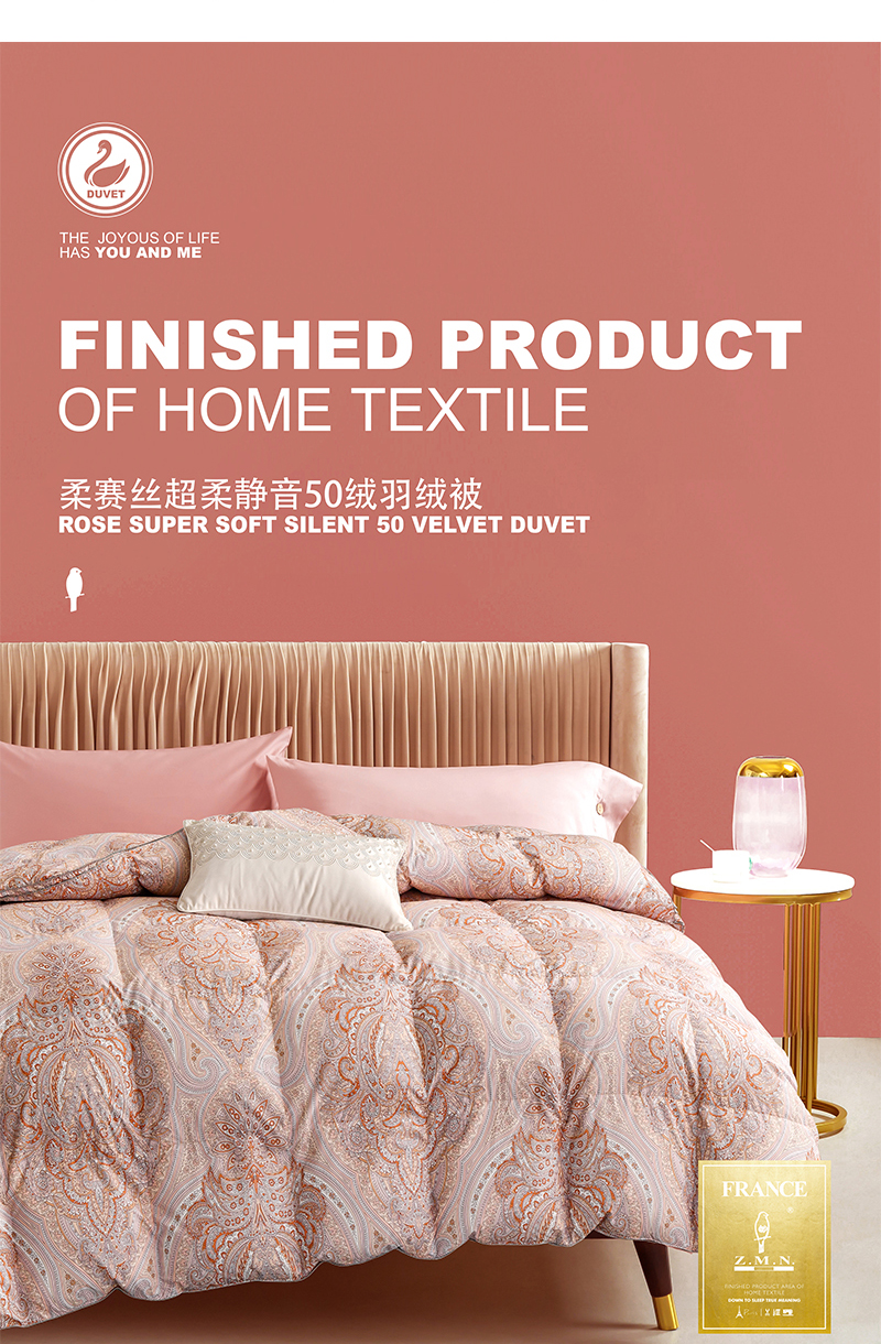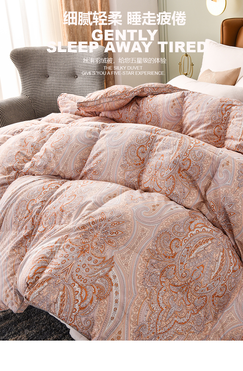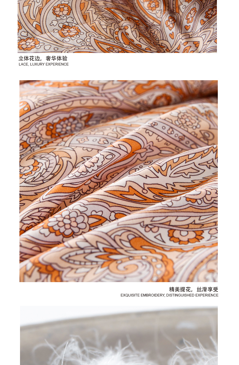 商品名称:Z.M.N./法国啄木鸟意伯蒙柔赛丝印花50鸭绒被200*230cm 2500g