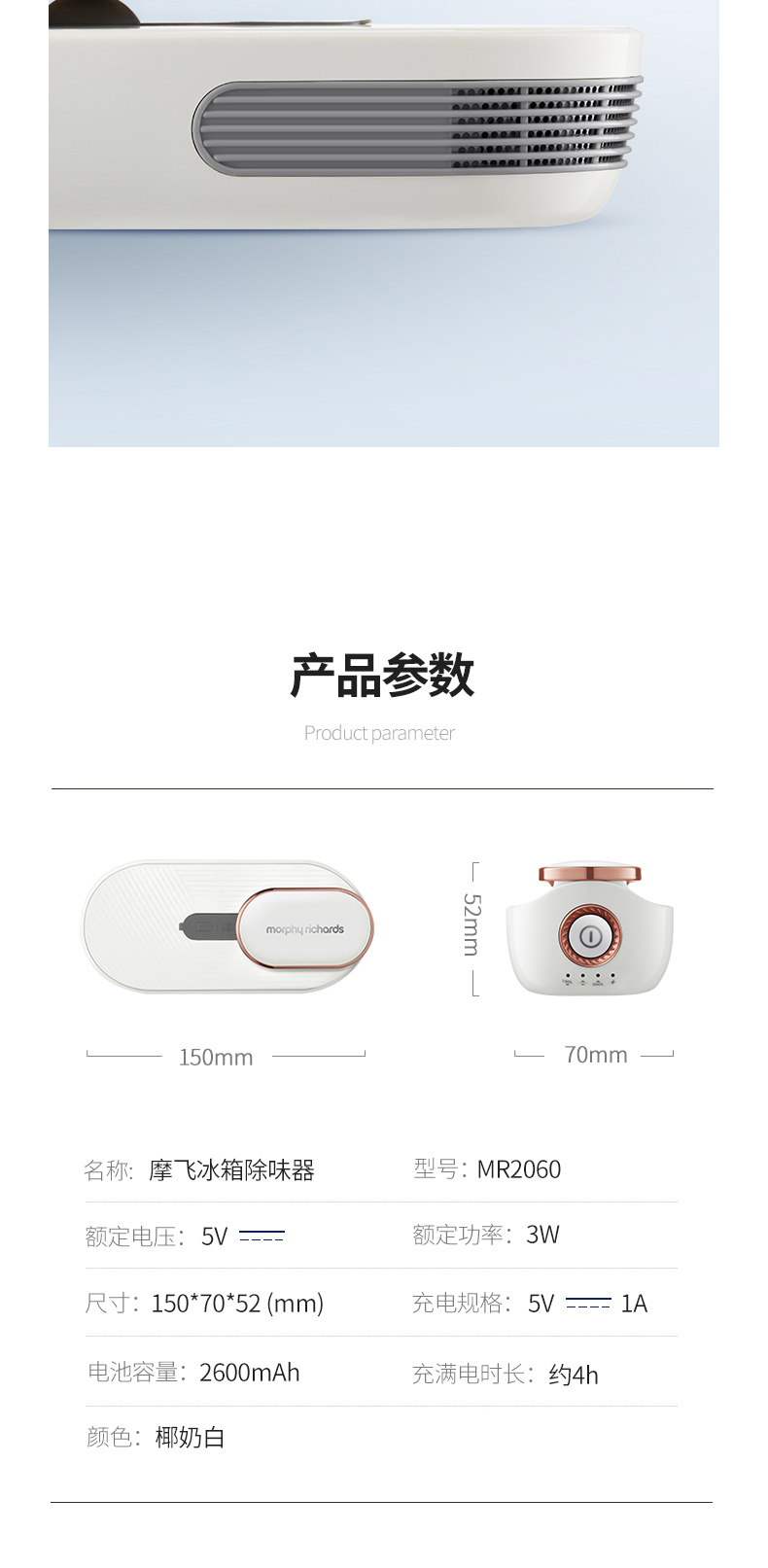 商品名称:Morphy Richards/摩飞冰箱除味器-椰奶白MR2060