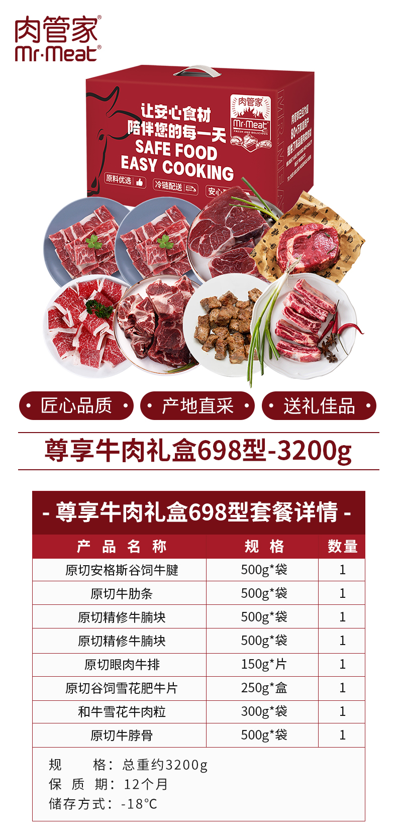 商品名称:【顺丰配送】肉管家698型尊享牛肉礼盒约3200g