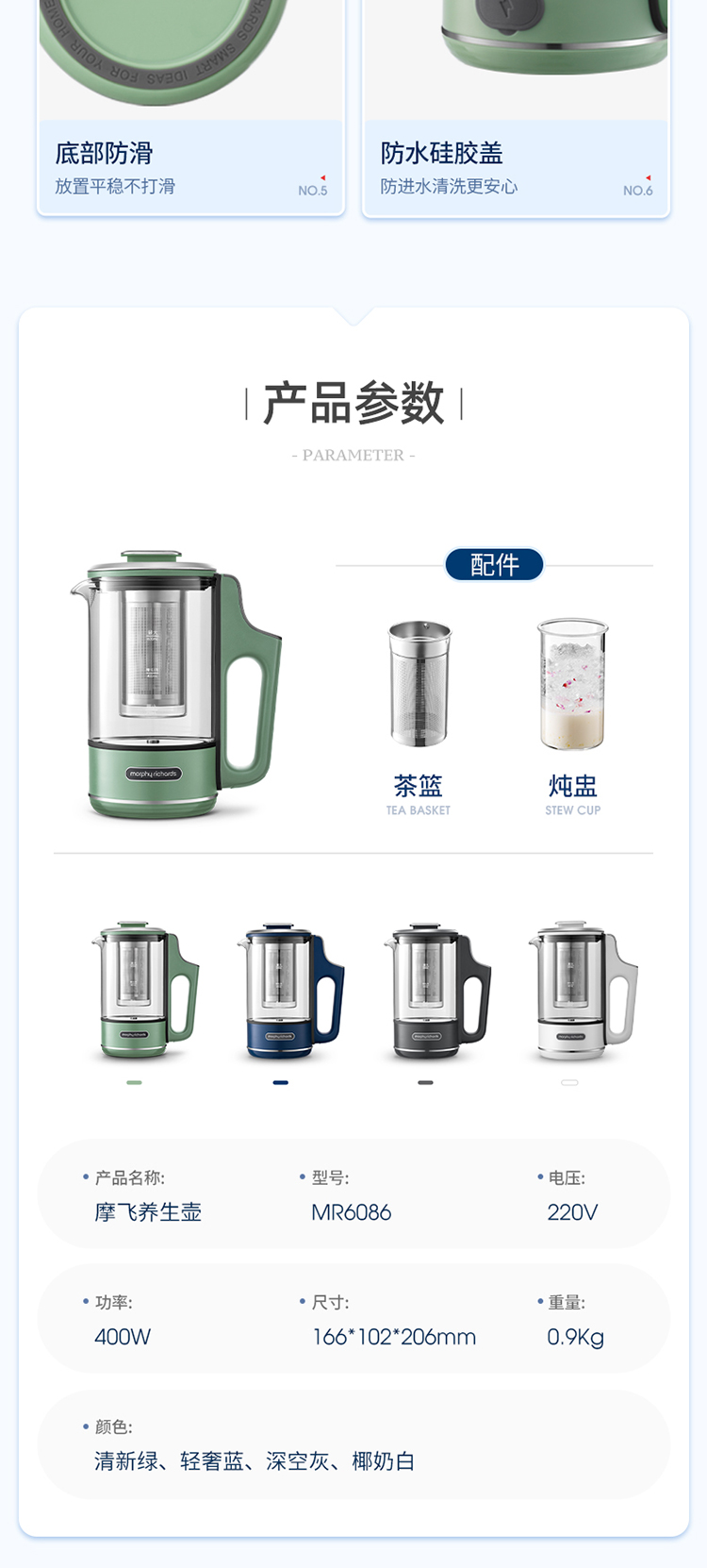 商品名称:Morphy Richards/摩飞600毫升迷你养生壶MR6086