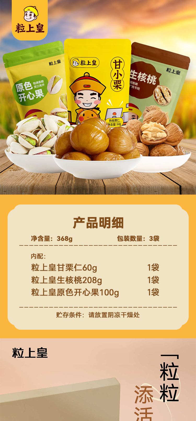 商品名称:粒上皇坚果零食小组合A款368g