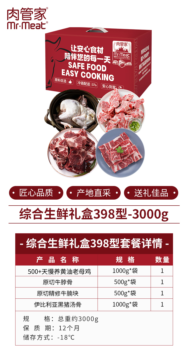 【顺丰配送】肉管家398型综合生鲜礼盒约3000g