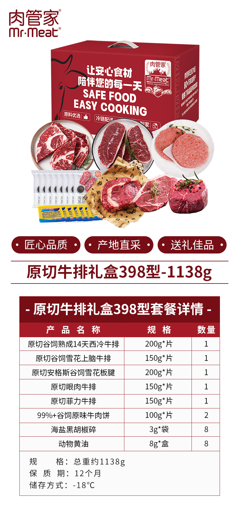 商品名称:【顺丰配送】肉管家398型原切牛排礼盒约1138g