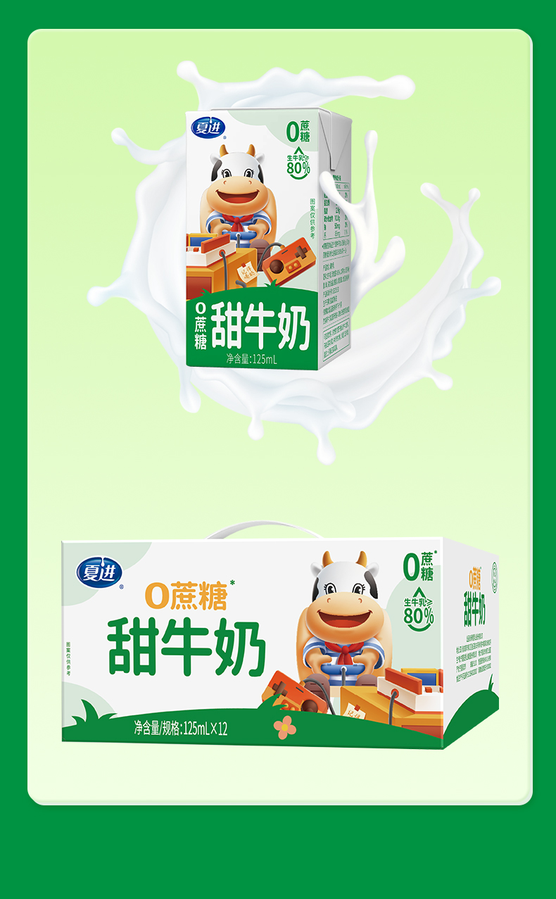夏进零蔗糖甜牛奶125ml*12盒