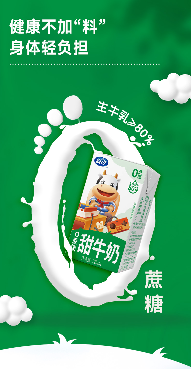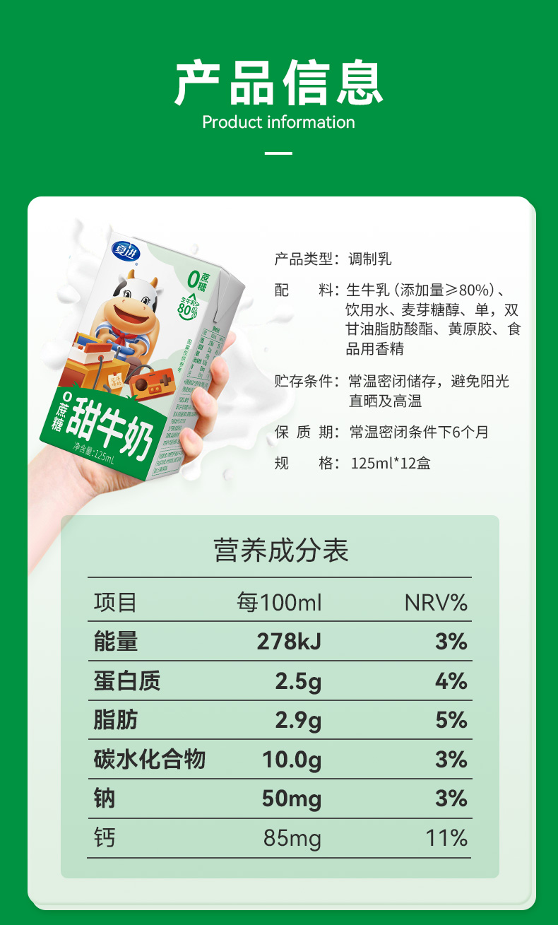 商品名称:夏进零蔗糖甜牛奶125ml*12盒