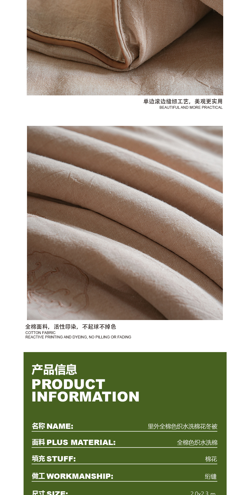 Z.M.N./法国啄木鸟帕克斯里外全棉色织水洗棉花冬被200*230cm 2500g