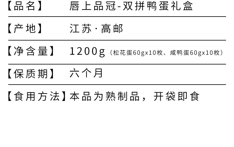 商品名称:唇上品冠双拼鸭蛋礼盒约1200g