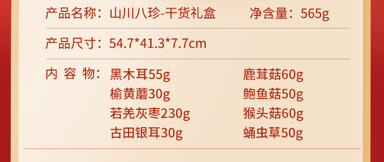 商品名称:禾煜山川八珍干货礼盒565g