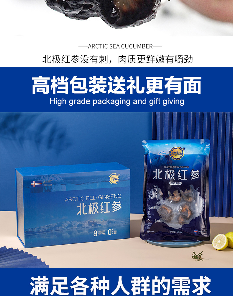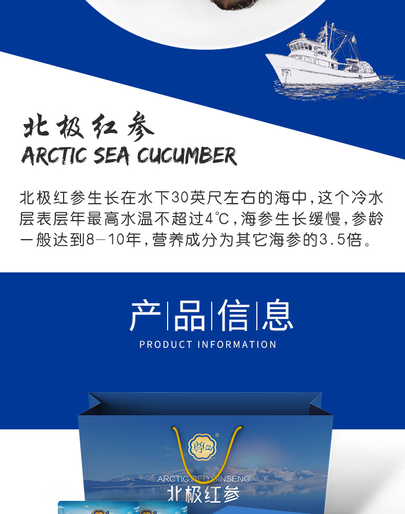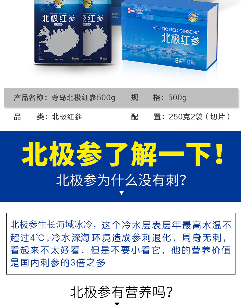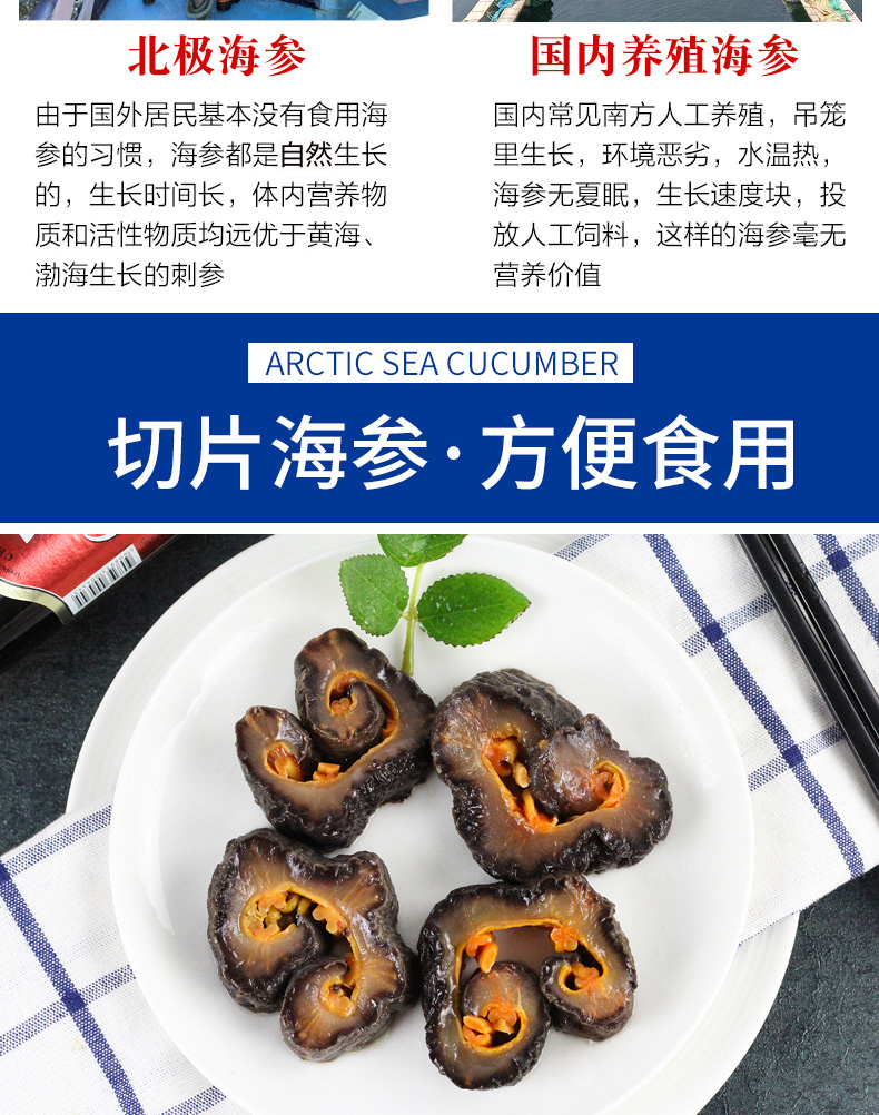 商品名称:【顺丰配送】尊岛北极红参切片即食海参礼盒约500g