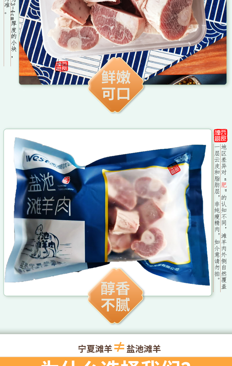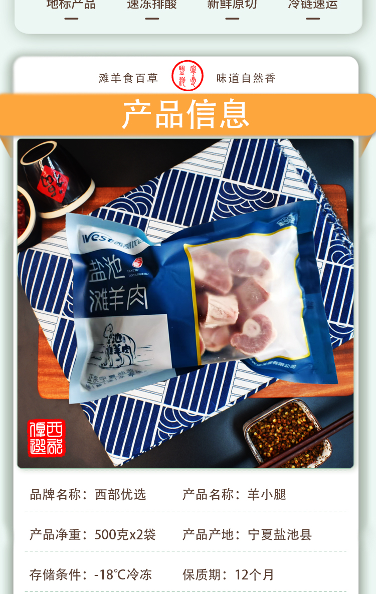 商品名称:【京东配送】西部优选盐池滩羊羊小腿500g*2袋