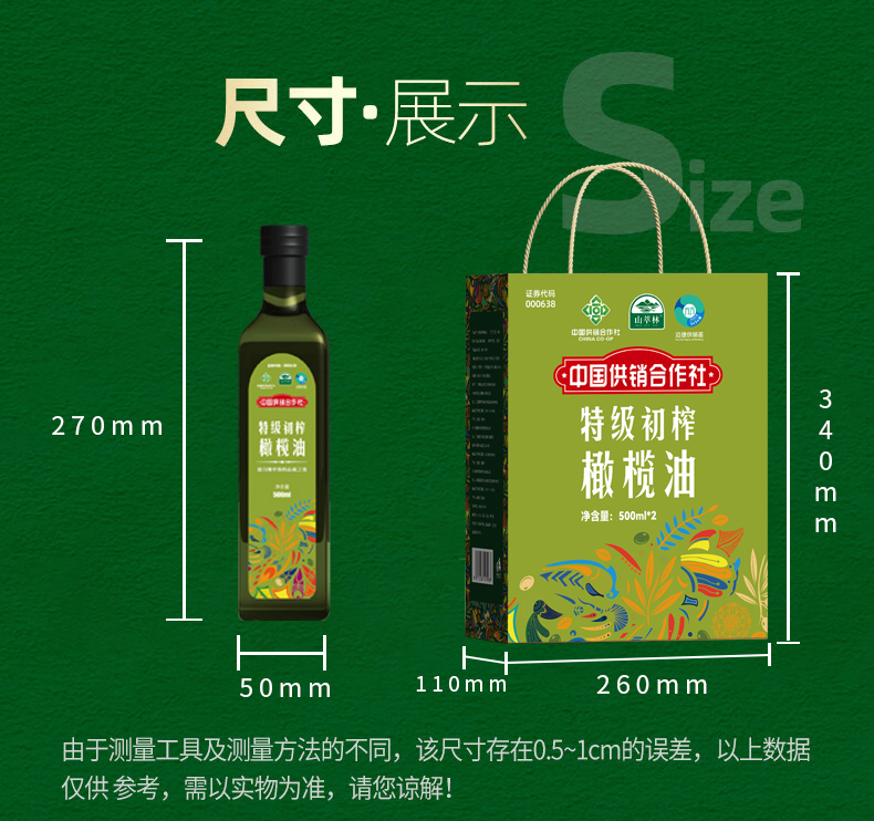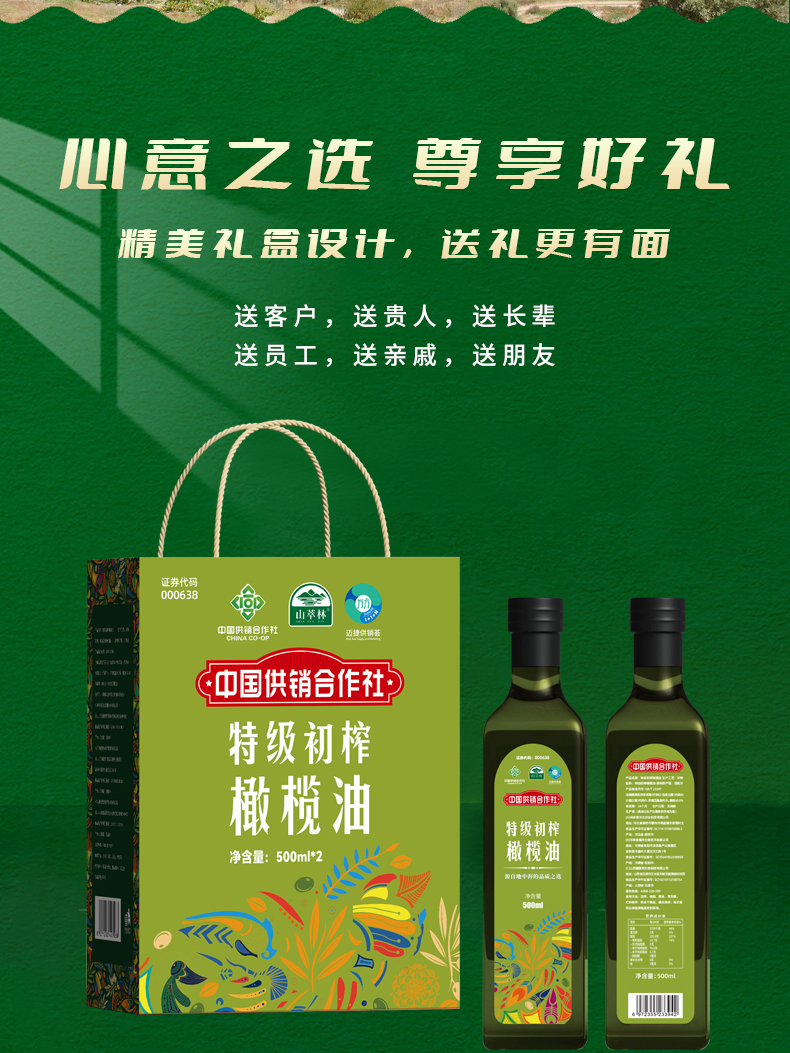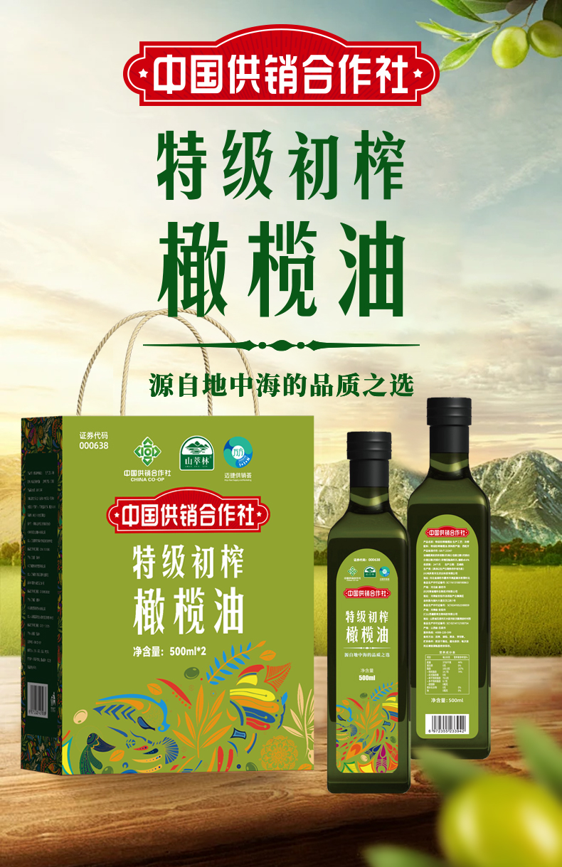 商品名称:山萃林特级初榨橄榄油礼盒500ml*2瓶