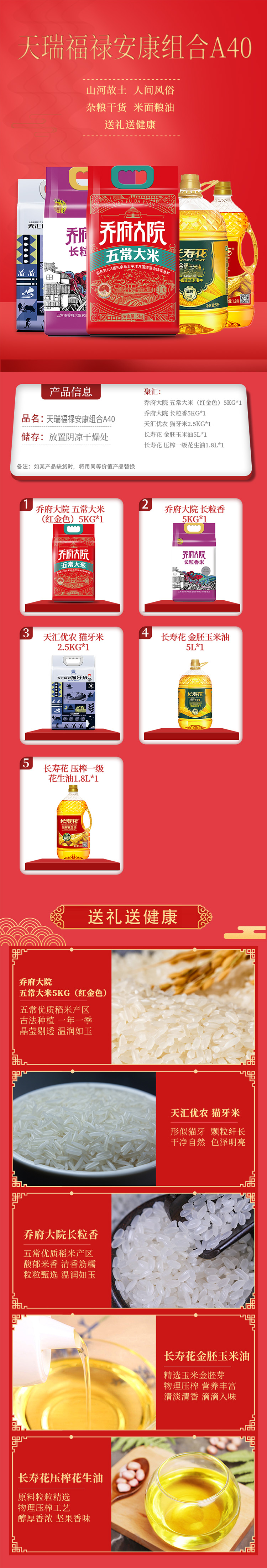 商品名称:长寿花/乔府大院/天汇优农米油组合12.5kg+6.8L