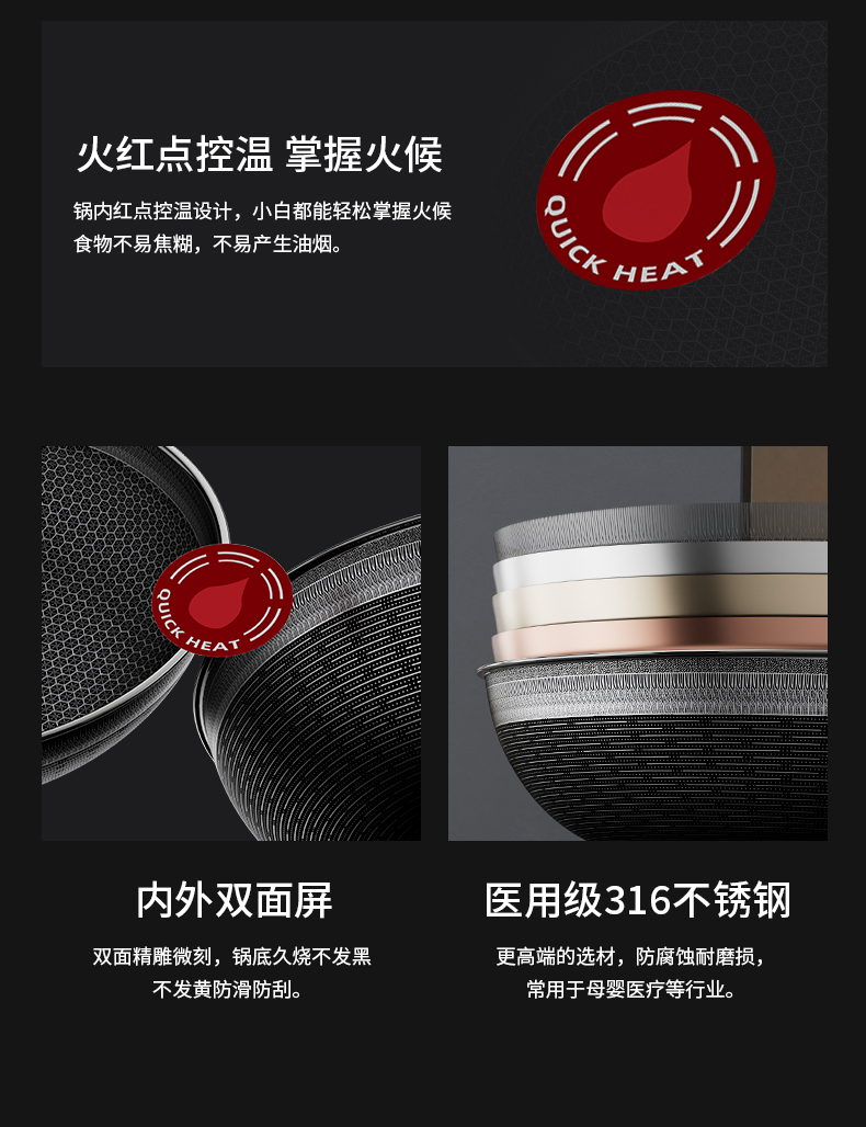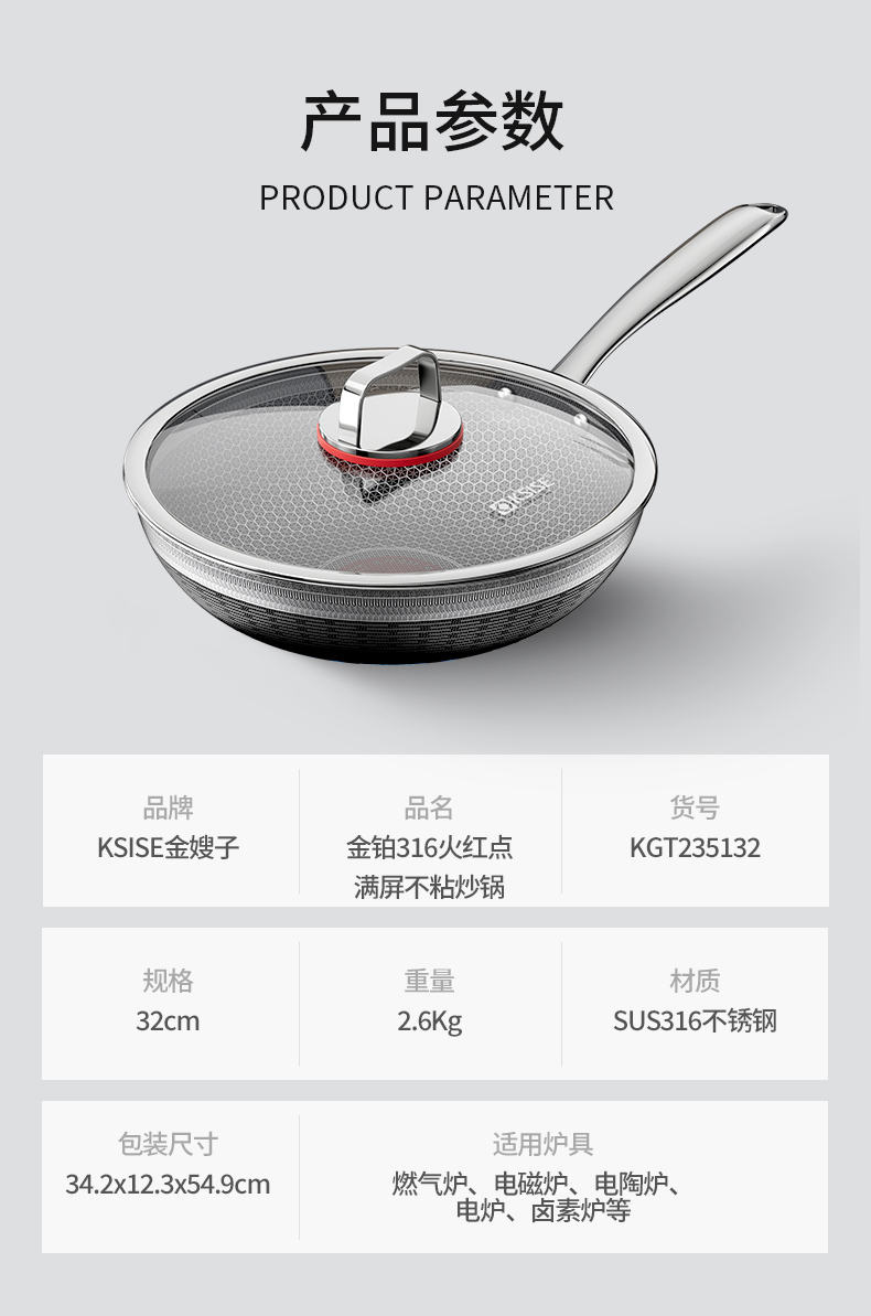 商品名称:KSISE/金嫂子32cm金铂316火红点满屏不粘炒锅KGT235132