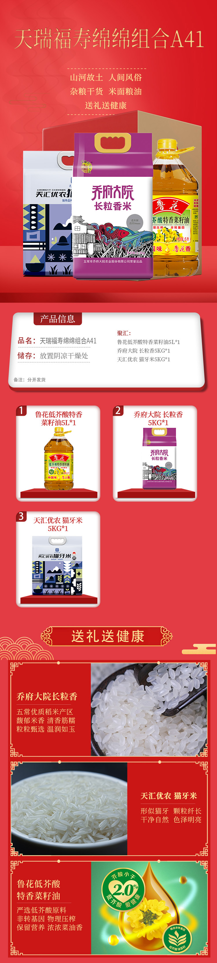 商品名称:鲁花/乔府大院/天汇优农米油组合10kg+5L