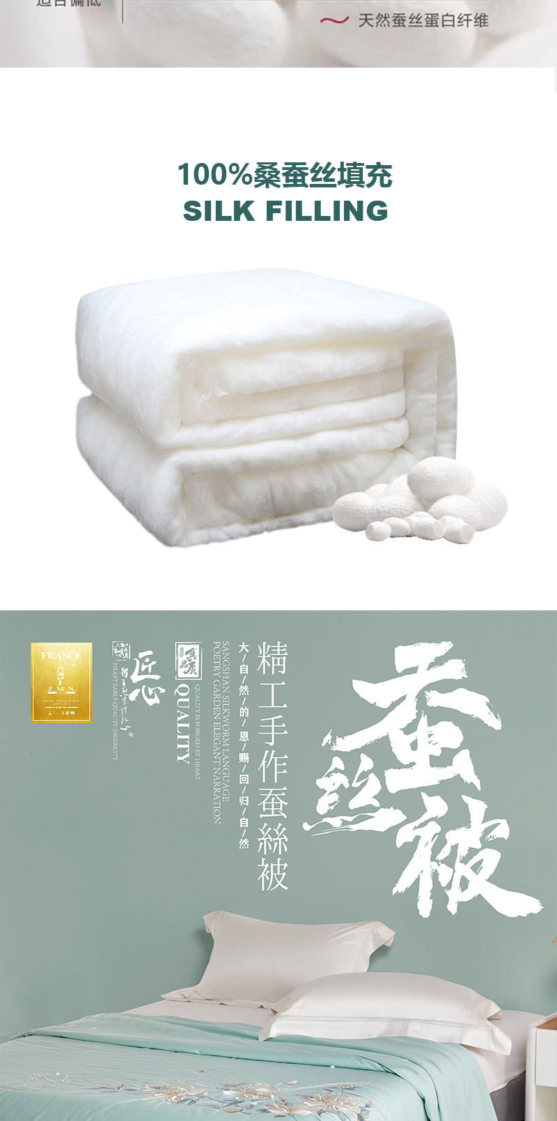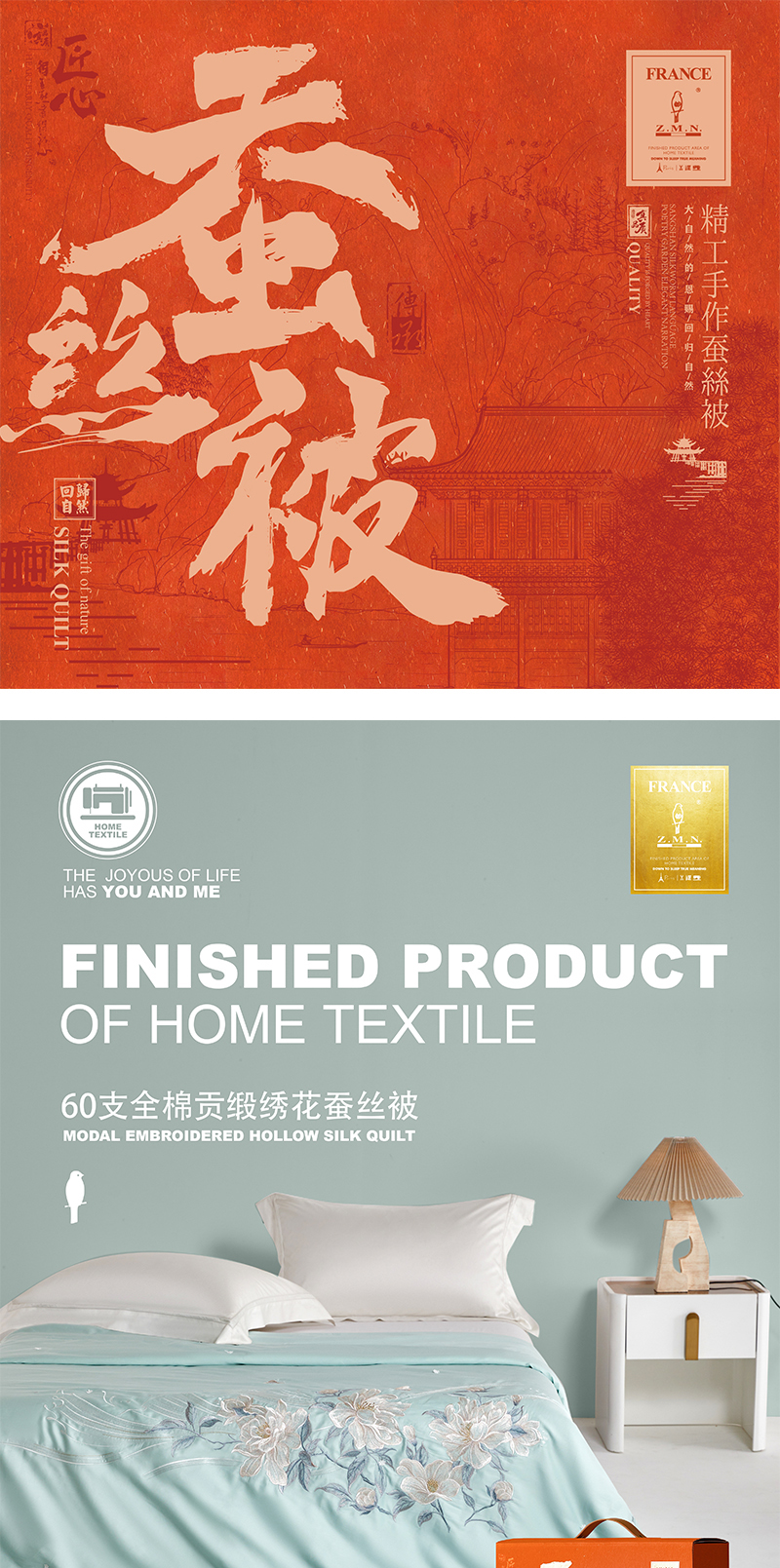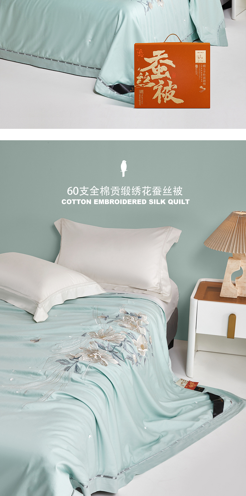 Z.M.N./法国啄木鸟依恋60支全棉贡缎绣花蚕丝被200*230cm 1520g