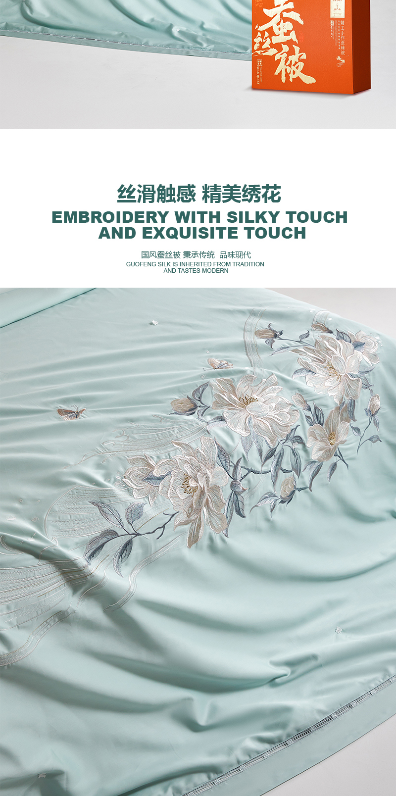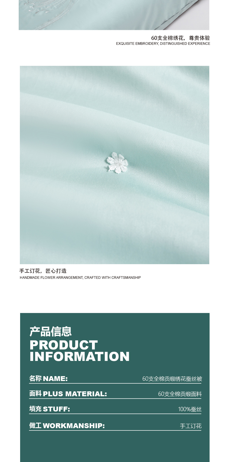 商品名称:Z.M.N./法国啄木鸟依恋60支全棉贡缎绣花蚕丝被200*230cm 1520g