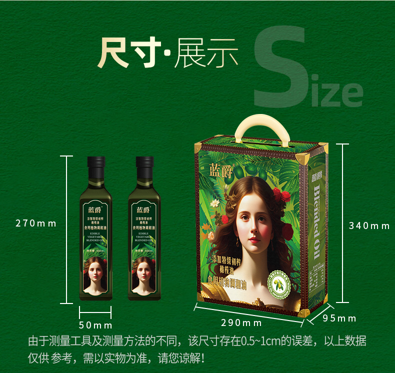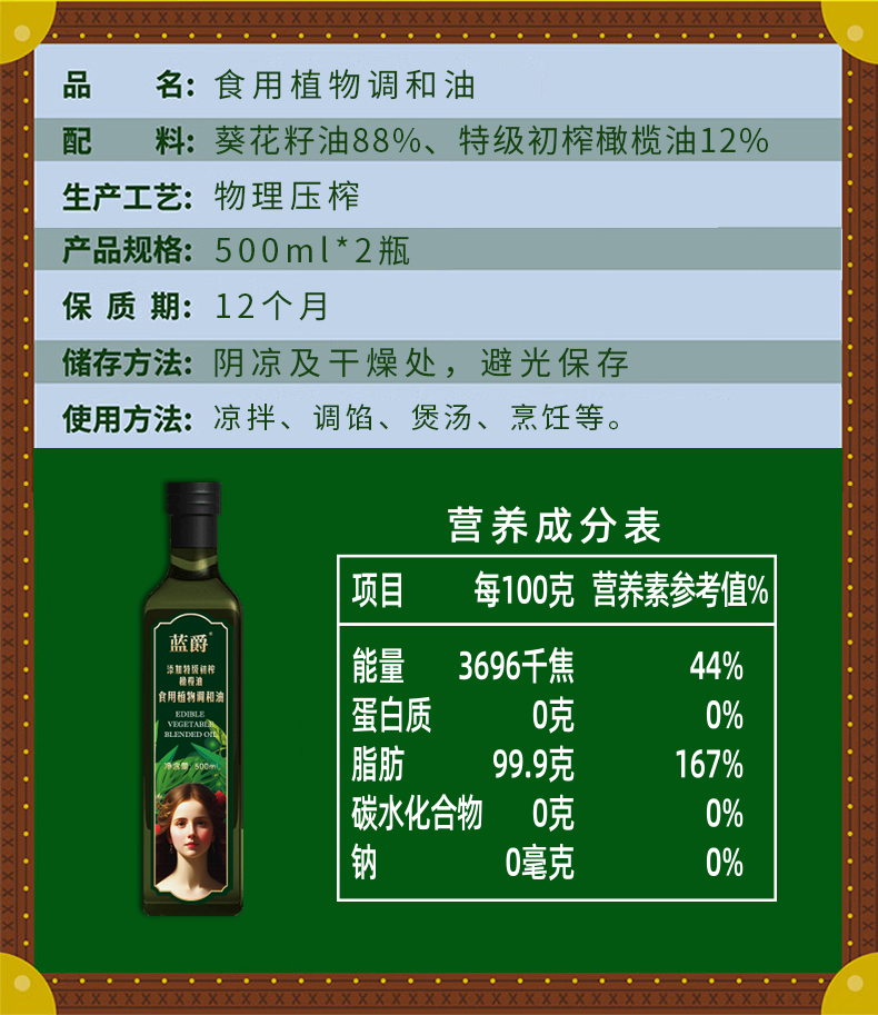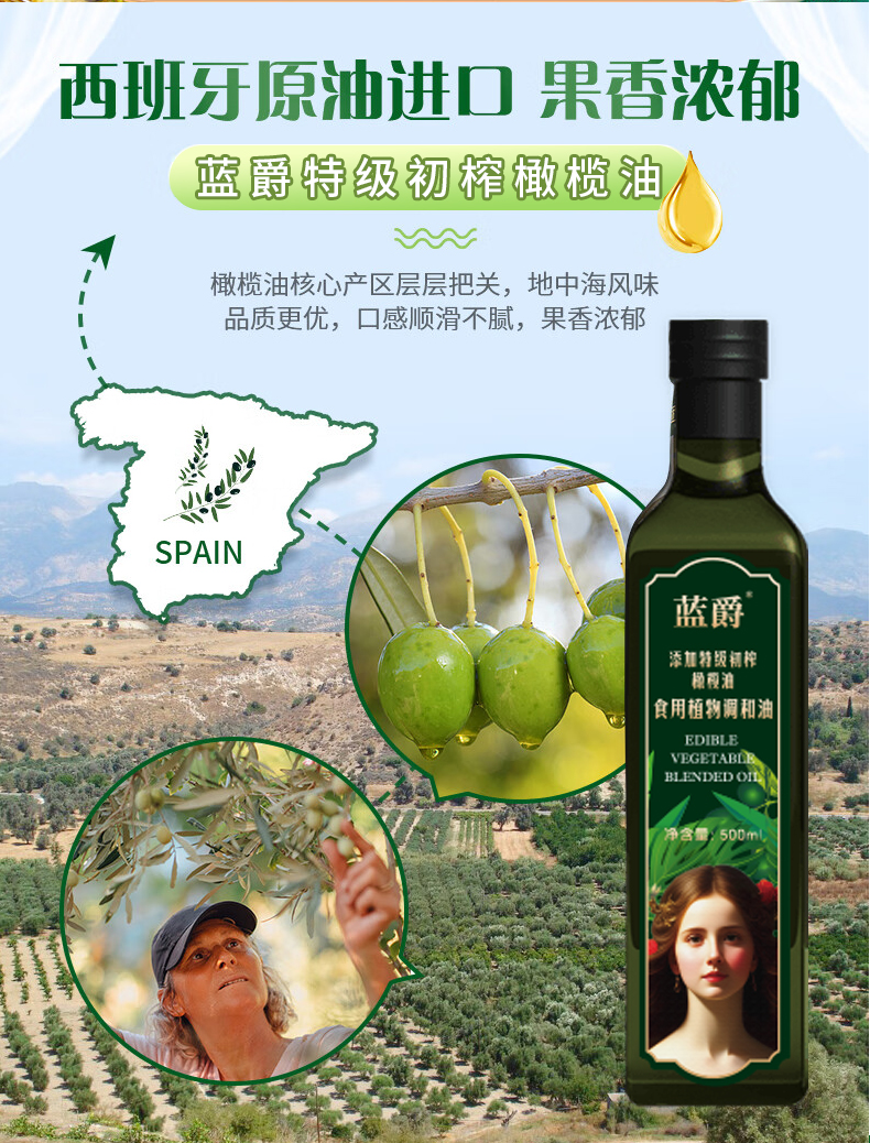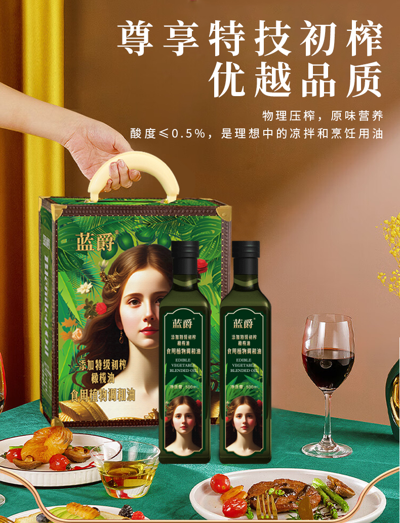 商品名称:蓝爵特级初榨橄榄调和油500ml*2礼盒