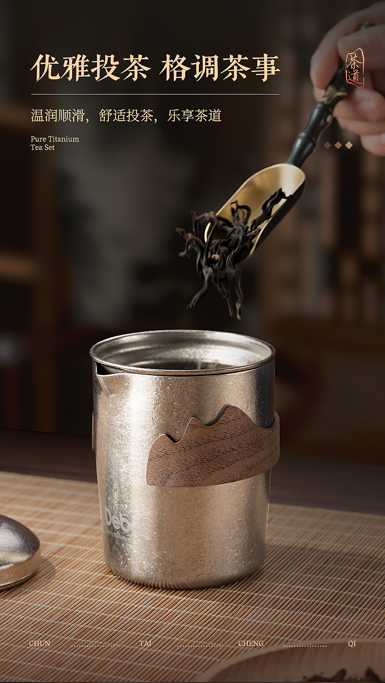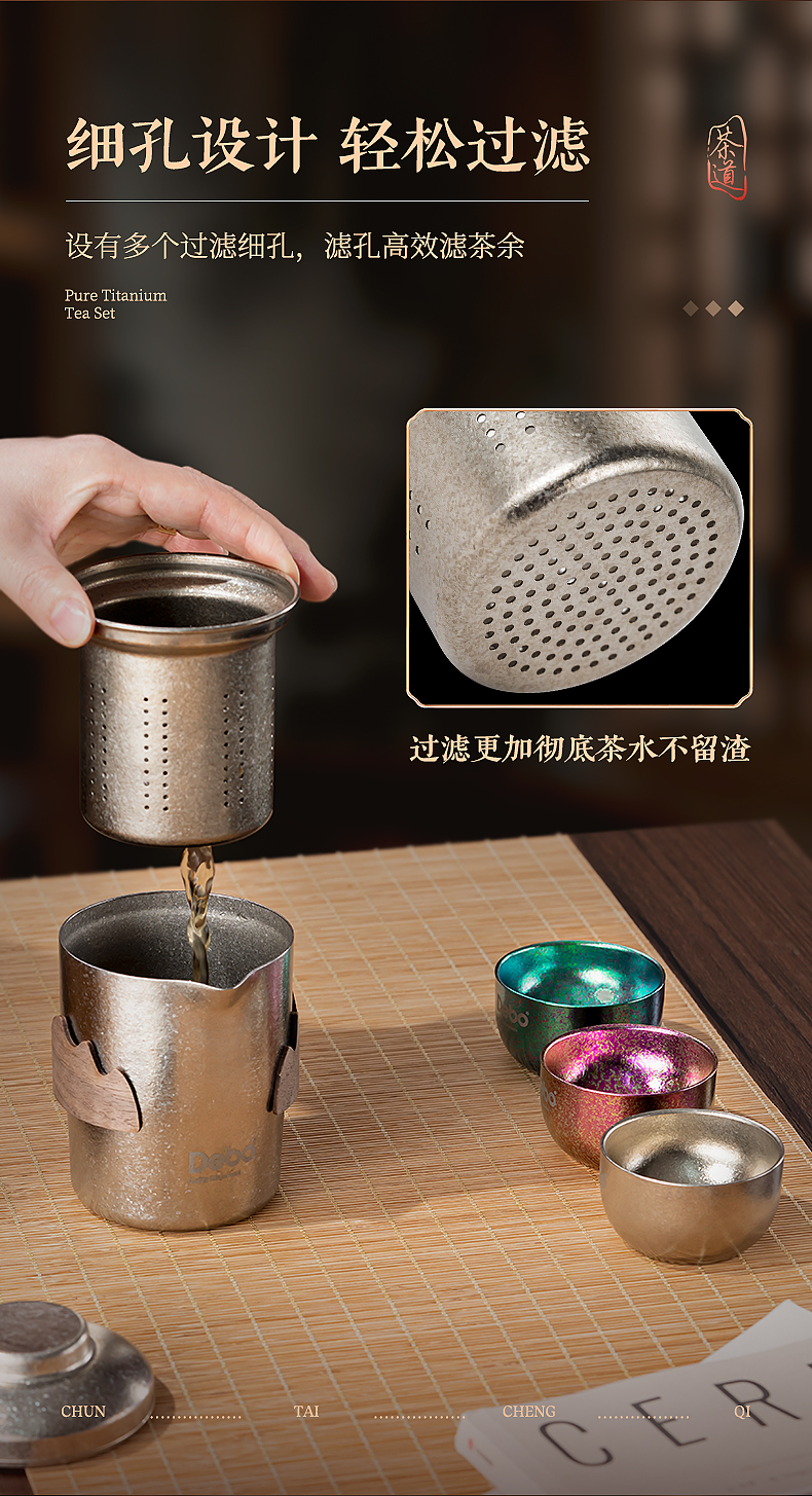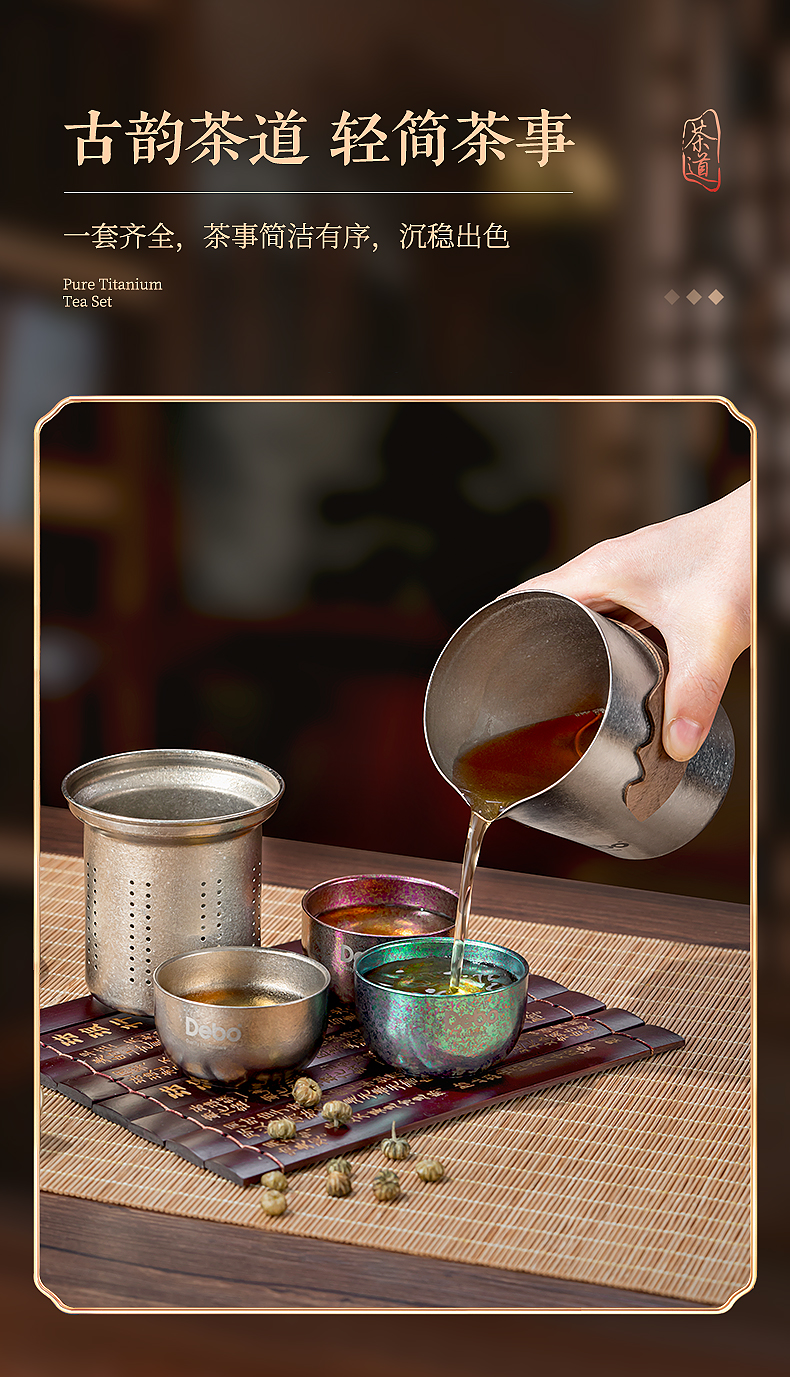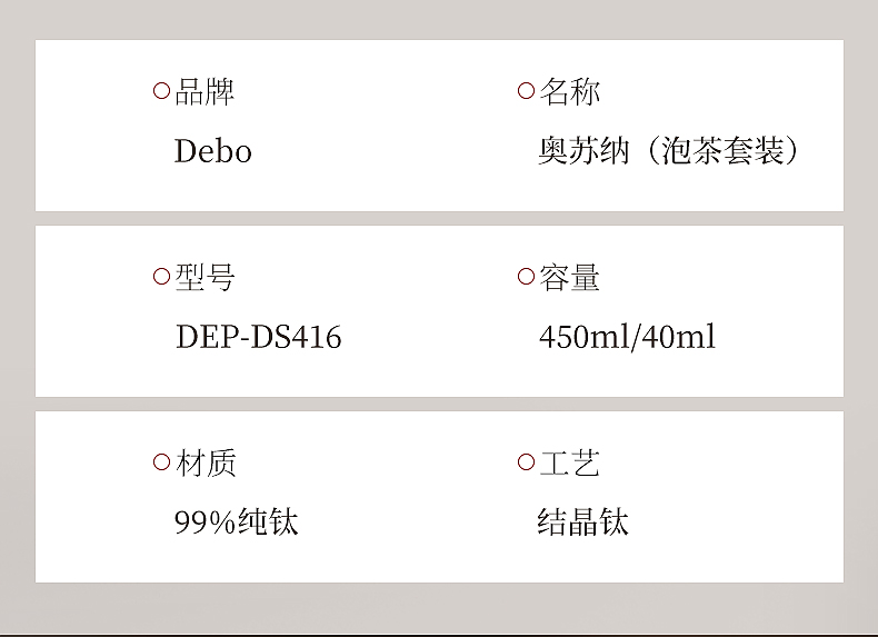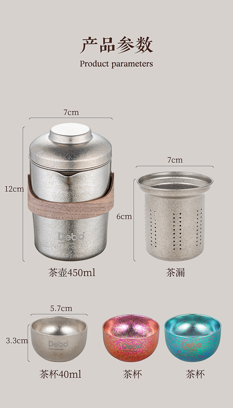 商品名称:Debo/德铂奥苏纳纯钛品茗茶具套装DEP-DS416