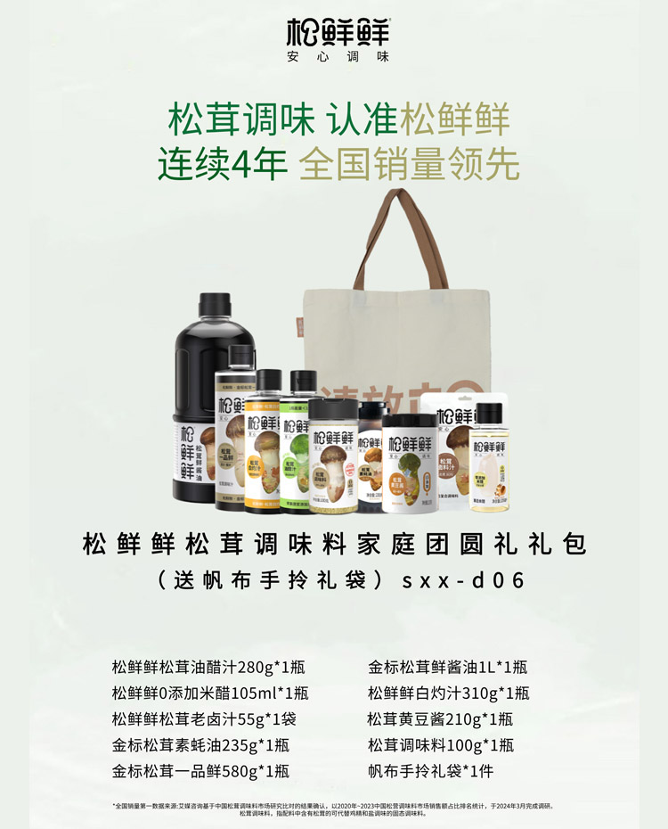 商品名称:松鲜鲜团圆礼松茸调味料礼包1770g+1105ml