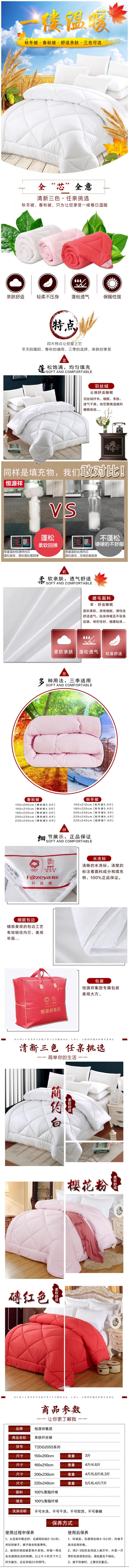商品名称:恒源祥彩羊亲肤纤丝被200*230cm 2800g