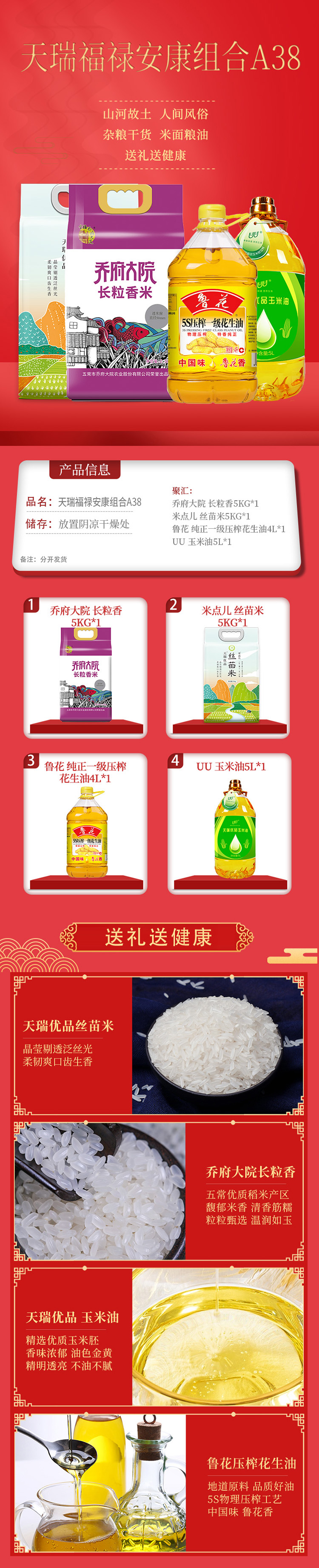 商品名称:鲁花/乔府大院/UU/米点儿米油组合10kg+9L