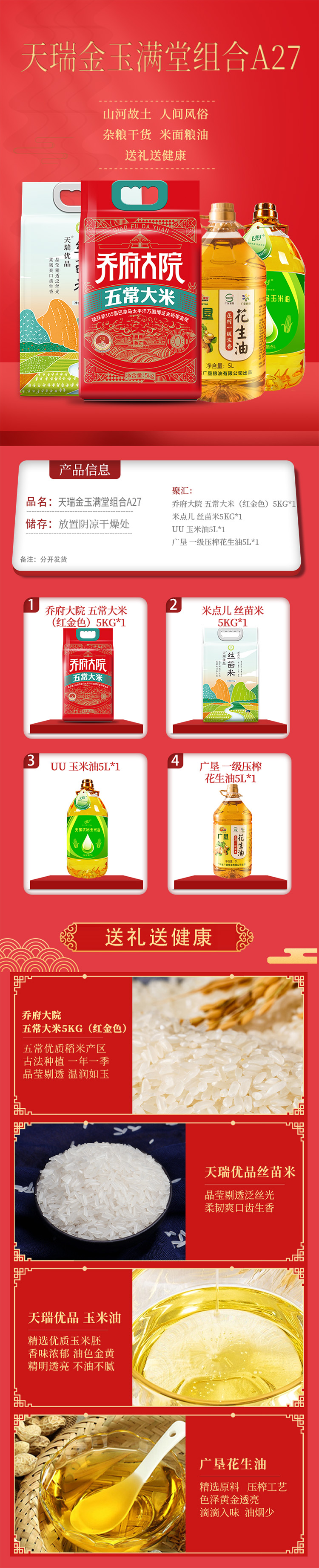 商品名称:乔府大院/广垦/UU/米点儿米油组合10kg+10L