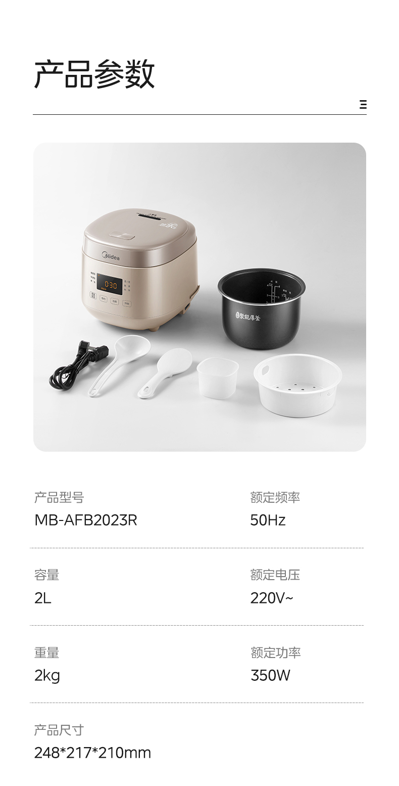 商品名称:Midea/美的2升电饭煲MB-AFB2023R