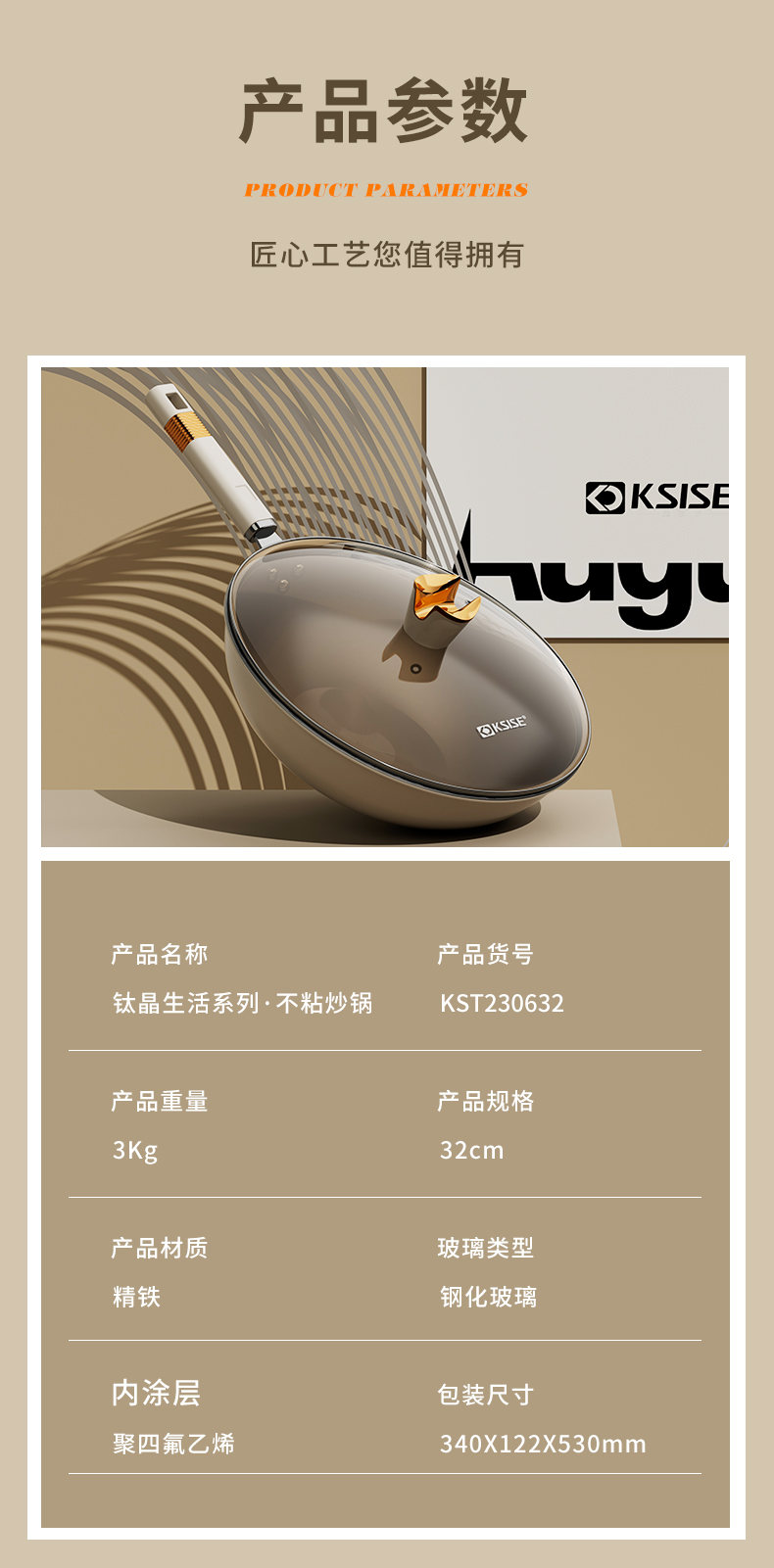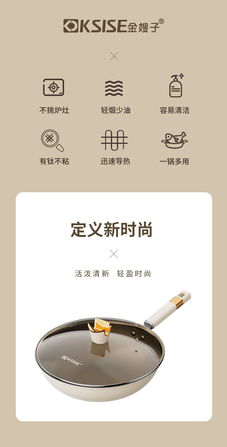 商品名称:KSISE/金嫂子32cm钛晶生活系列不粘炒锅KST230632