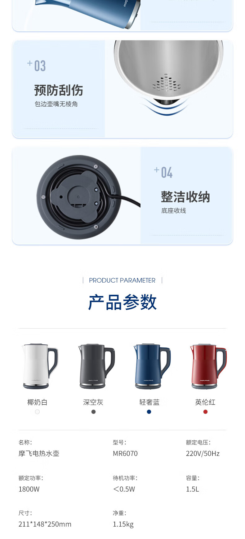 商品名称:Morphy Richards/摩飞1.5升电热水壶MR6070