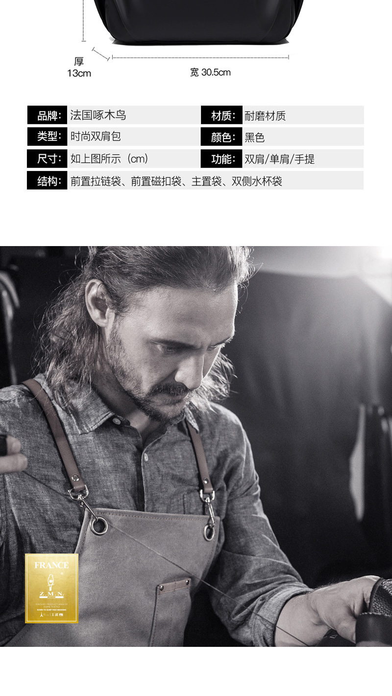 商品名称:Z.M.N./法国啄木鸟克利赛时尚双肩包-黑色ZRB-2024
