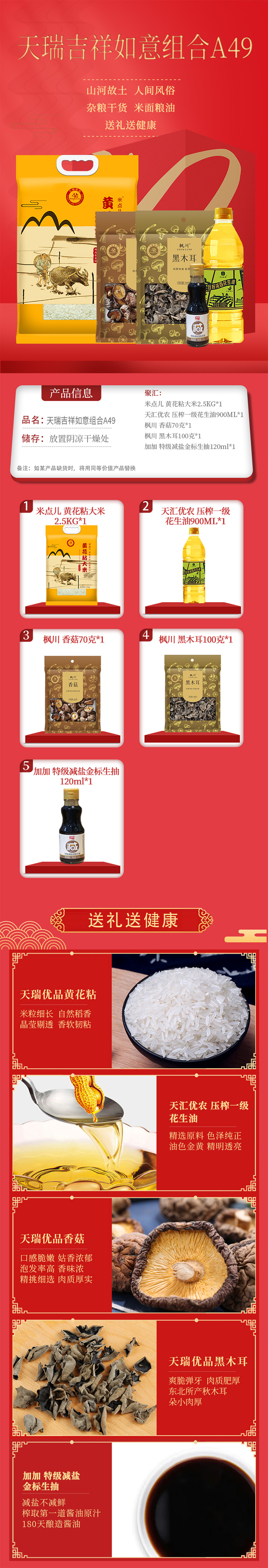 商品名称:加加/天汇优农/米点儿/枫川粮油调味干货组合2670g+1020ml