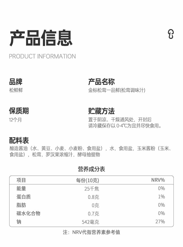 商品名称:松鲜鲜畅享礼松茸调味料礼包1165g