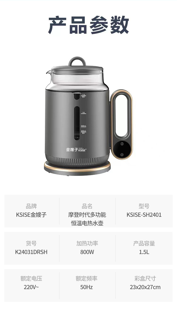 商品名称:KSISE/金嫂子1.5升摩登时代多功能恒温电热水壶KSISE-SH2401