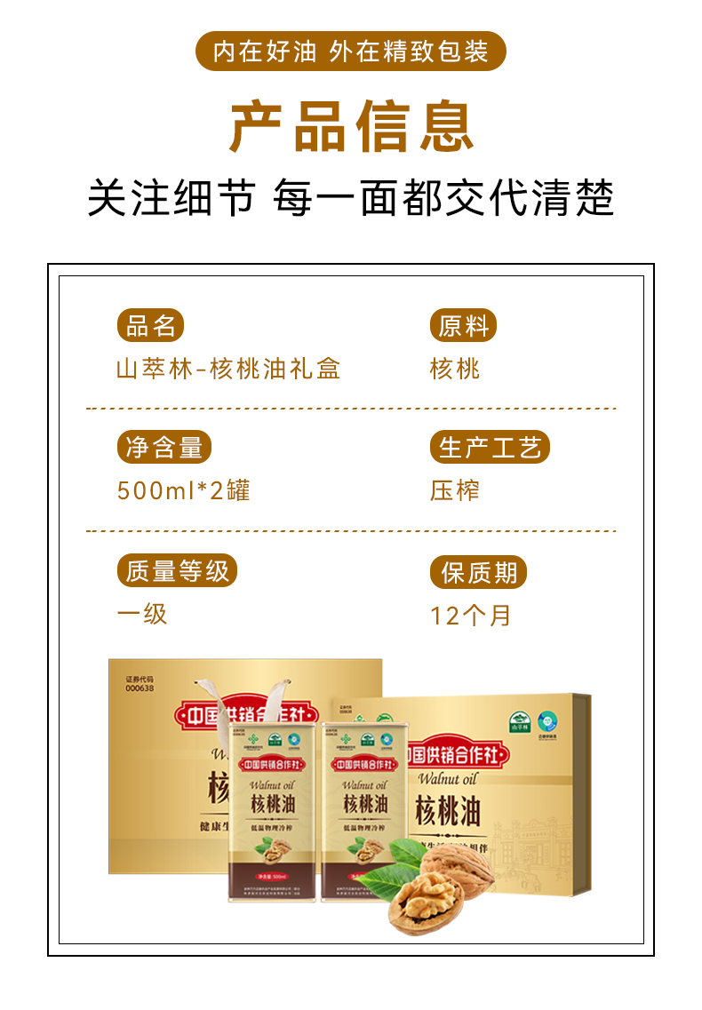 商品名称:山萃林核桃油礼盒500ml*2罐