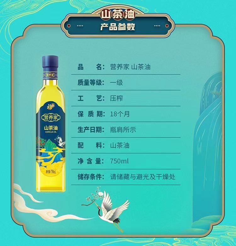 商品名称:中粮福临门营养家山茶油礼盒750ml*2瓶