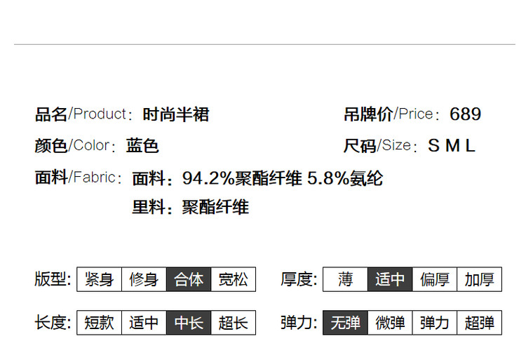 商品名称:【TR时尚a字裙】秋季通勤中腰拉链半身裙女中长款 928321