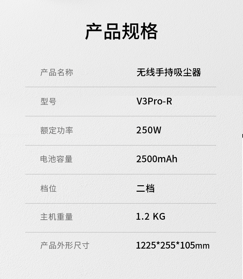 商品名称:AUCMA/澳柯玛无线手持吸尘器V3Pro-R