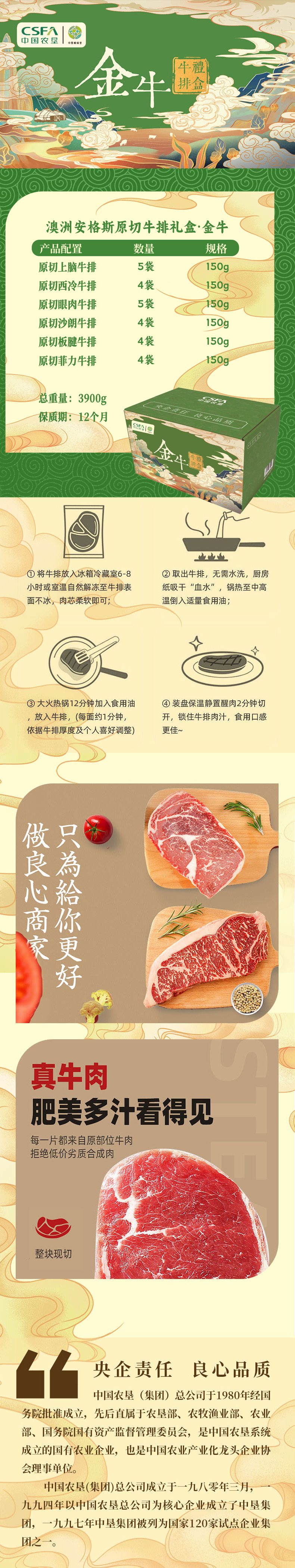 '西北专供'【顺丰快递】CSFA/中国农垦中垦优选澳洲安格斯金牛原切牛排礼盒3900g