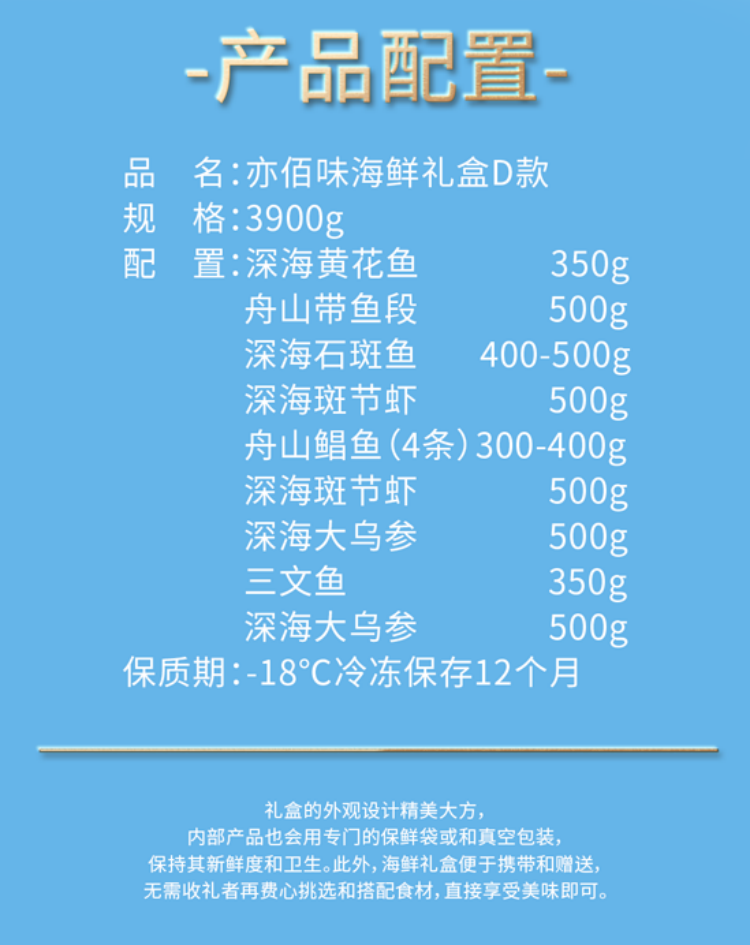 【京东/顺丰配送】亦佰味海鲜生鲜礼盒D款约3900g
