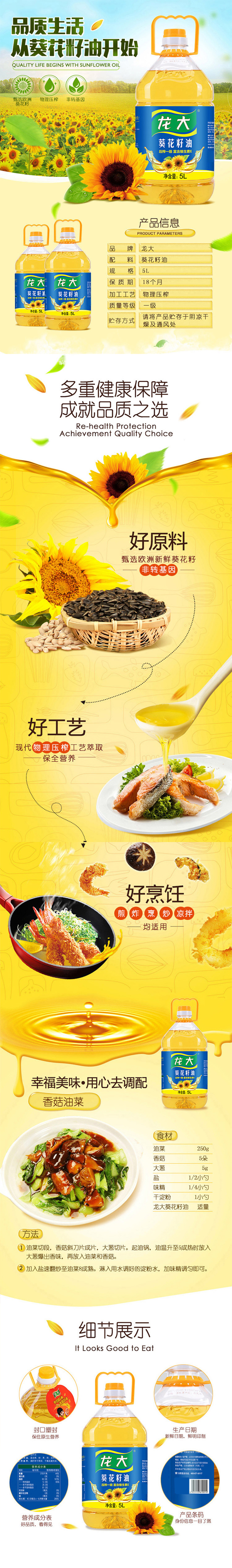 商品名称:龙大压榨一级葵花籽油5L