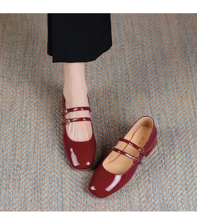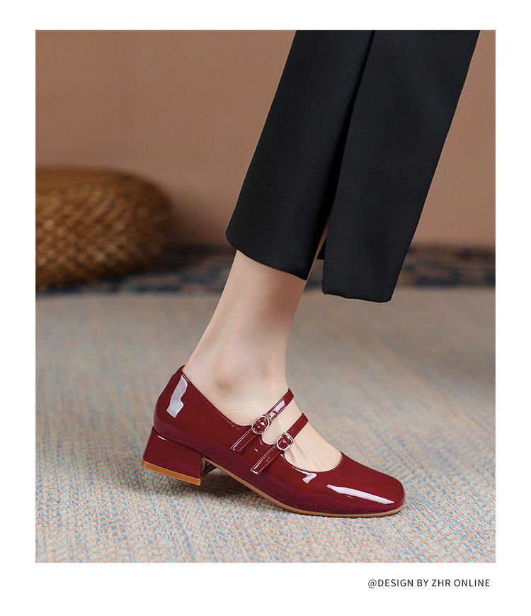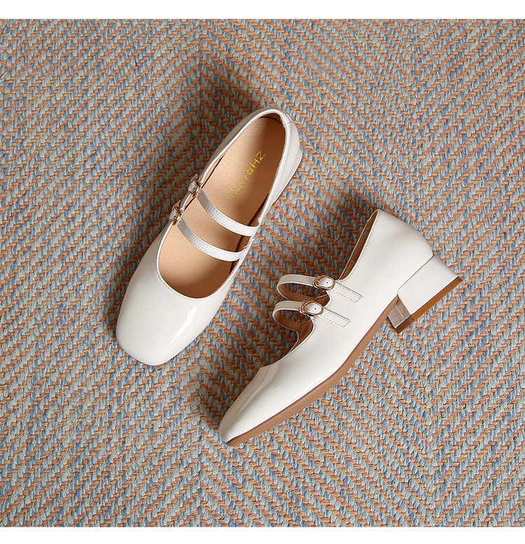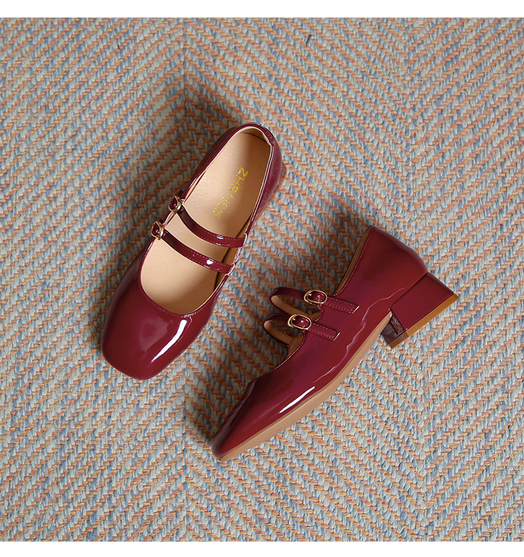 【双带搭扣】复古粗跟浅口单鞋小皮鞋子夏季玛丽珍女鞋女士单鞋女 101568