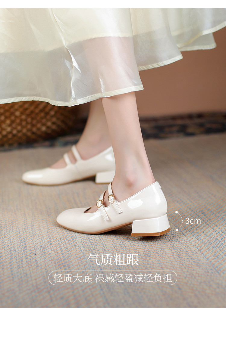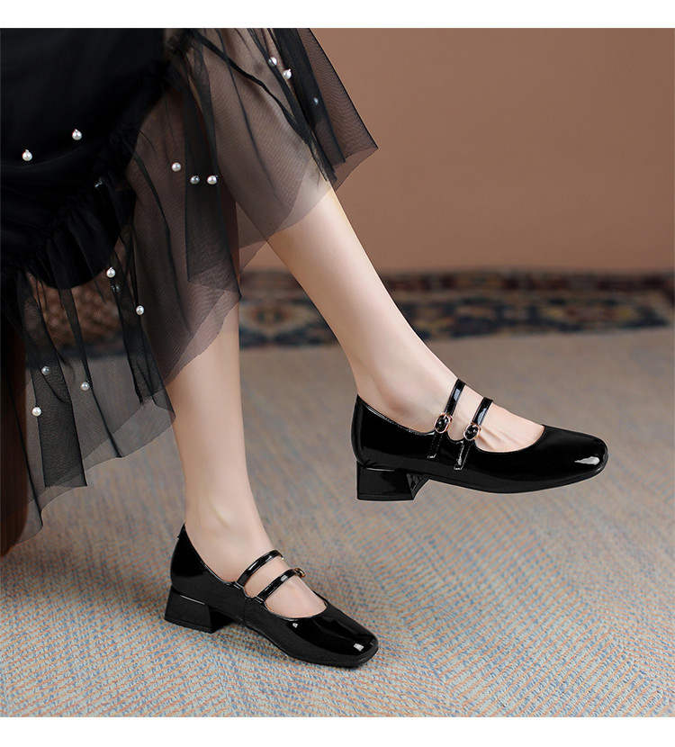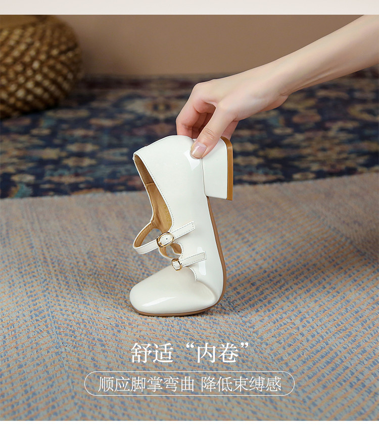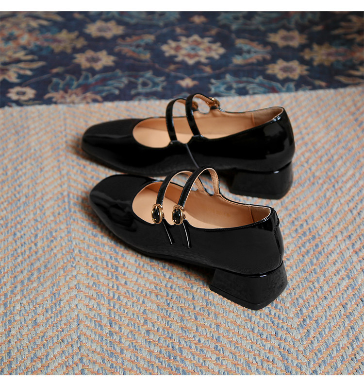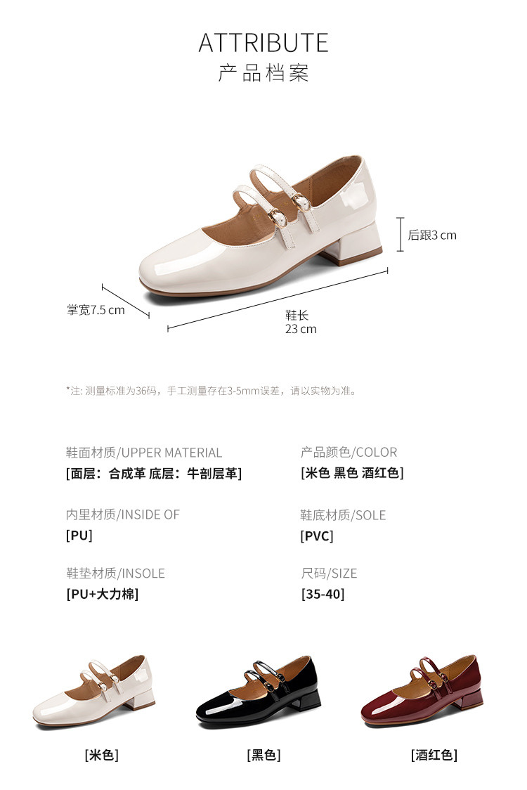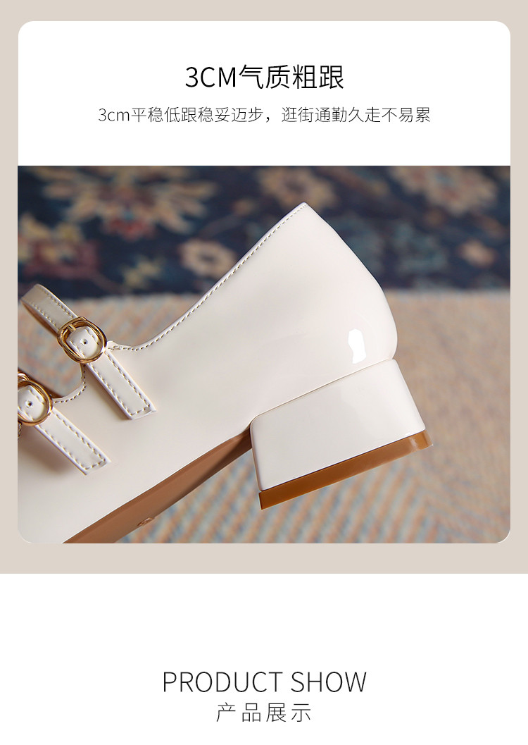 商品名称:【双带搭扣】复古粗跟浅口单鞋小皮鞋子夏季玛丽珍女鞋女士单鞋女 101568