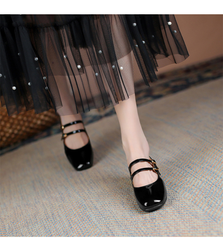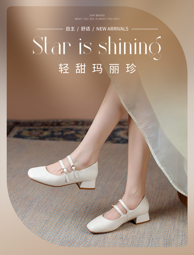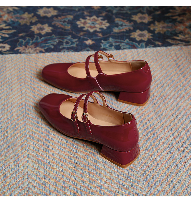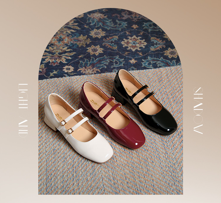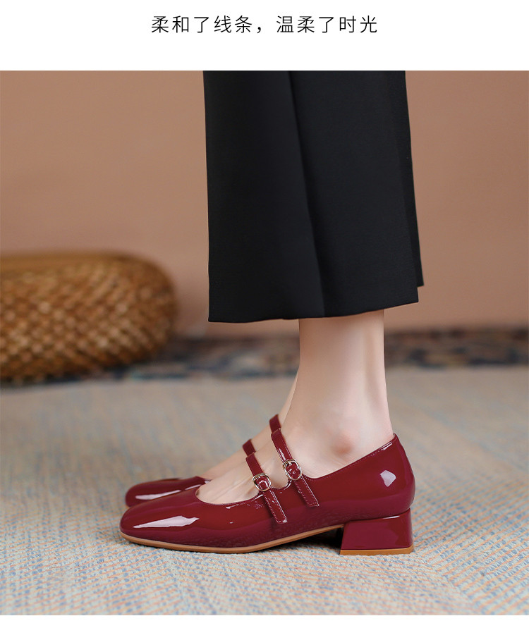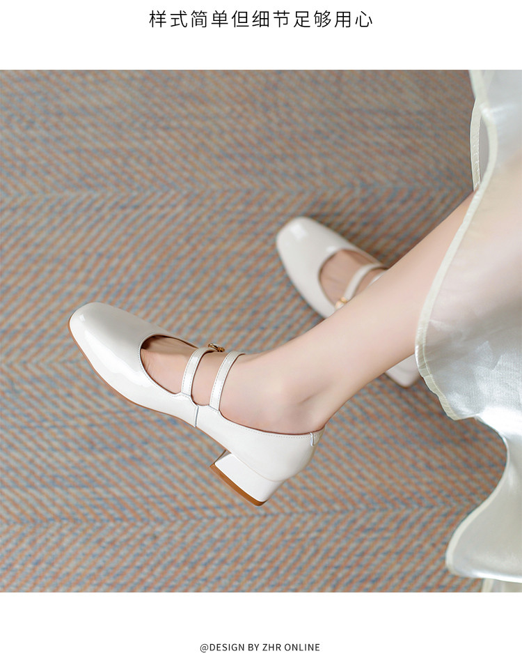 商品名称:【双带搭扣】复古粗跟浅口单鞋小皮鞋子夏季玛丽珍女鞋女士单鞋女 101568