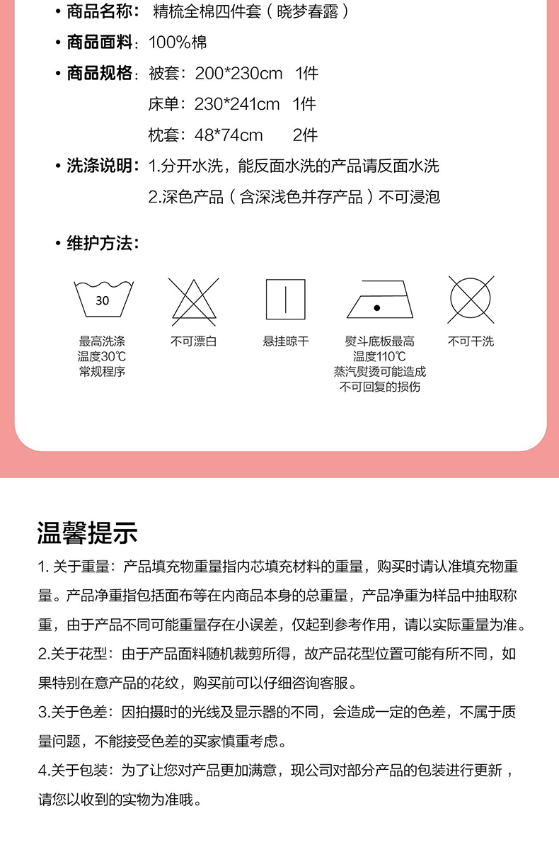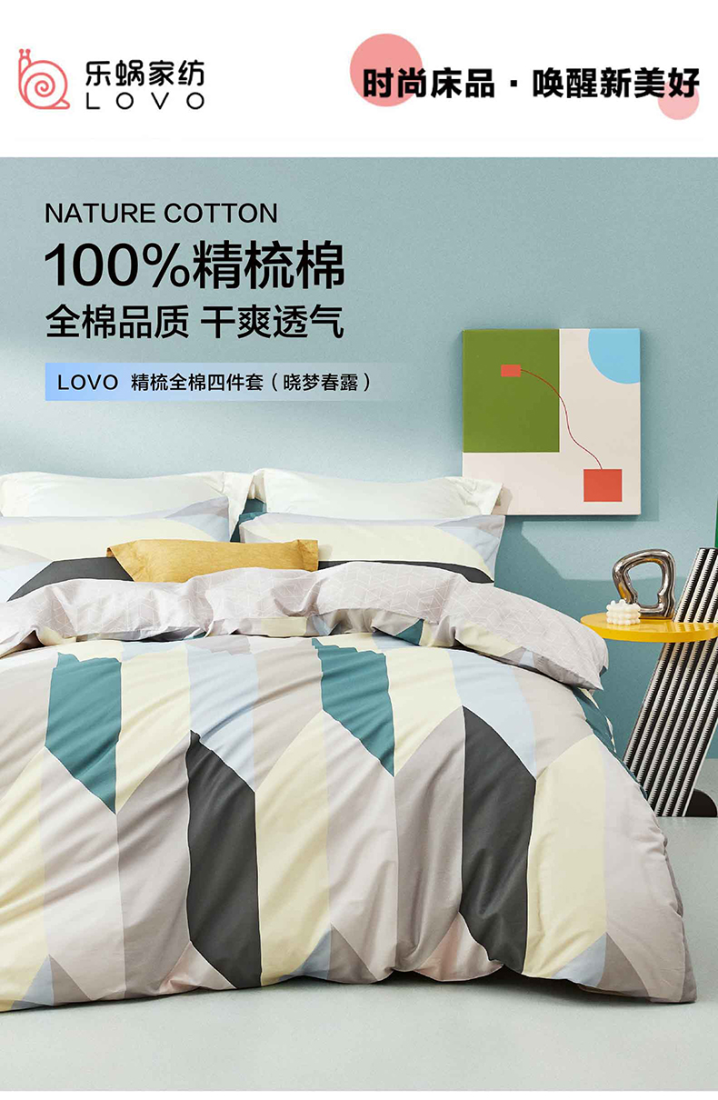 商品名称:LOVO/乐蜗家纺晓梦春露精梳全棉床品四件套200*230cm