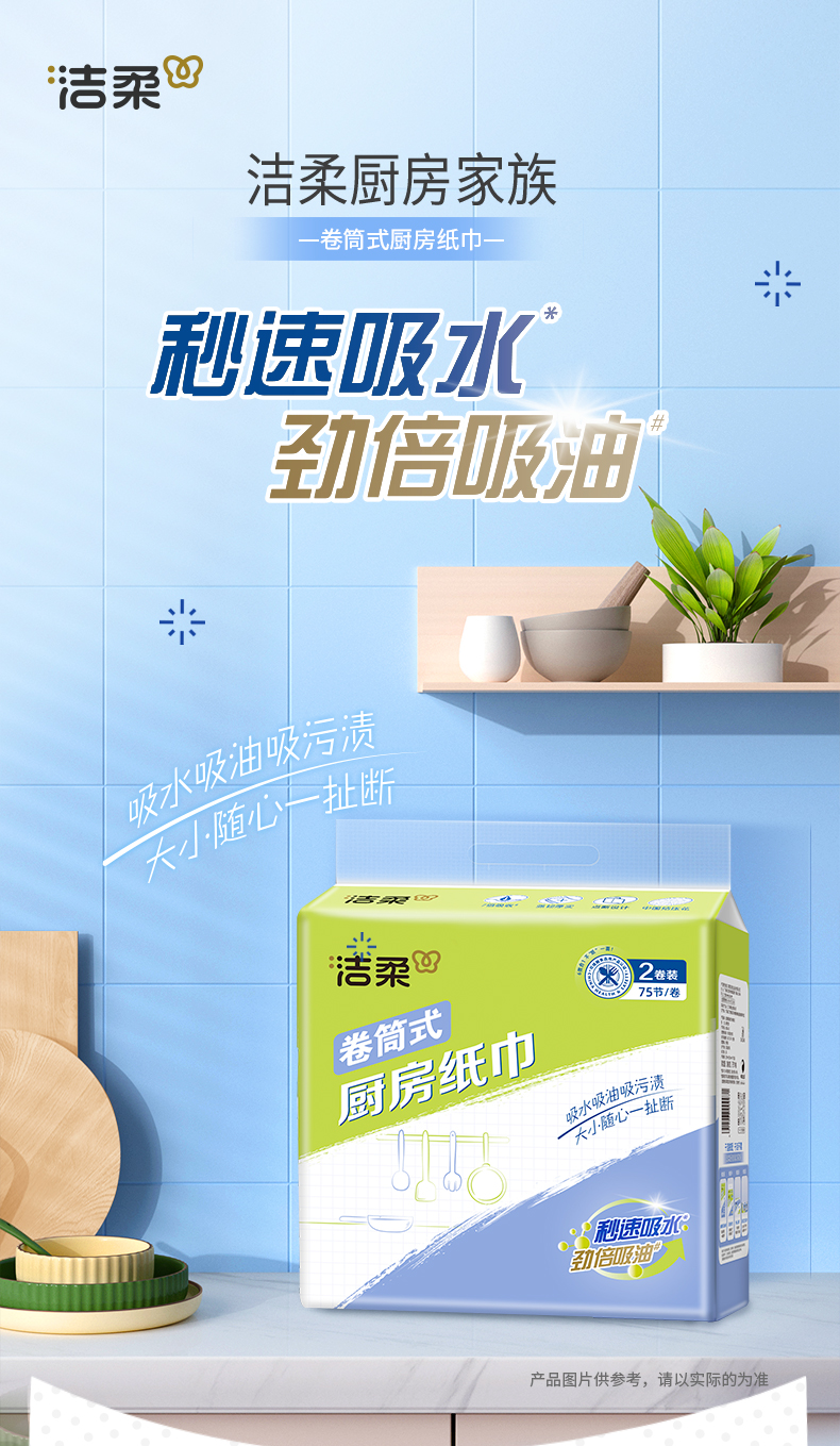 商品名称:C&S/洁柔卷筒式厨房纸巾整箱75节*8卷JK008-08E