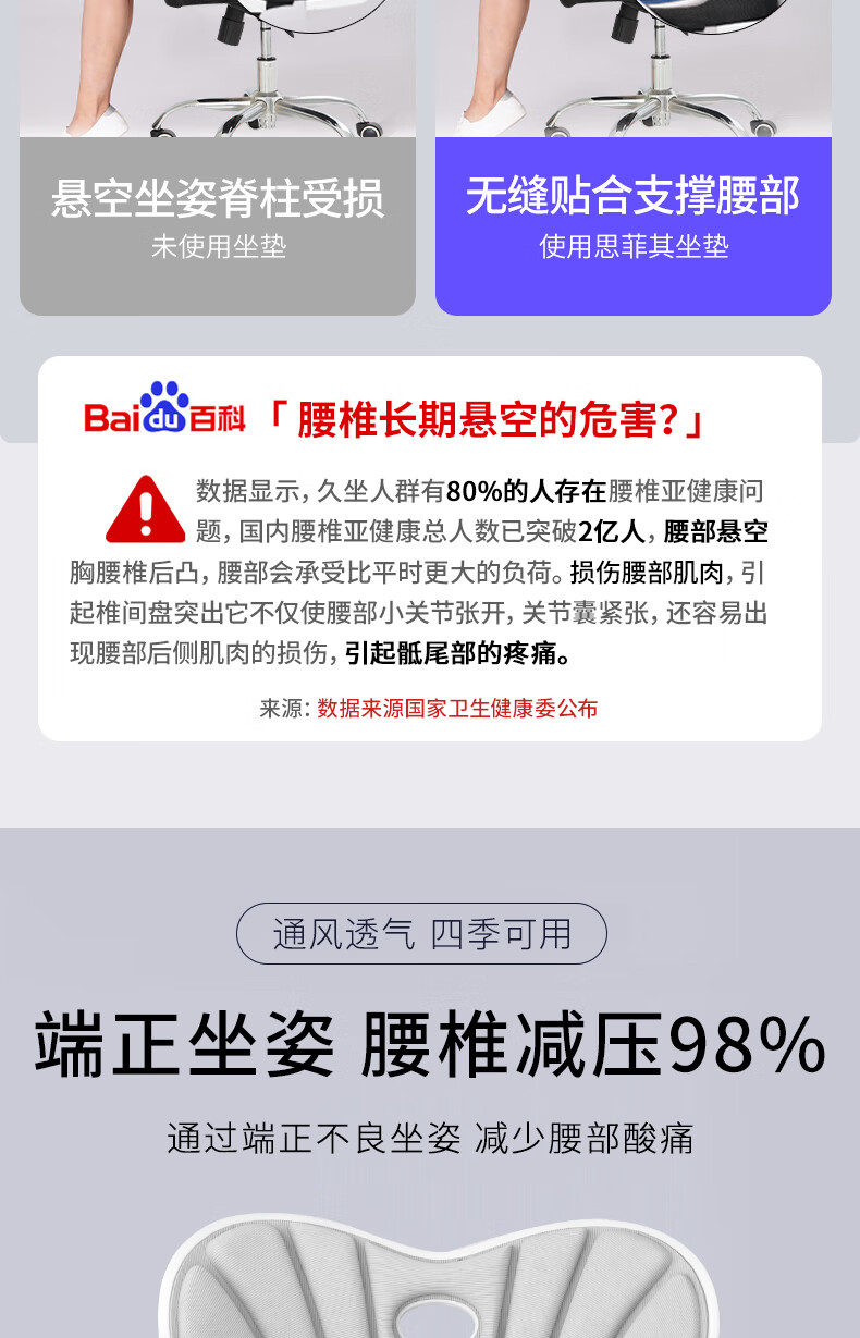 商品名称:思菲其护腰坐垫-灰色条纹加大款S02
