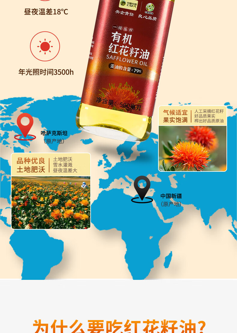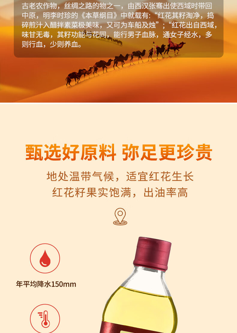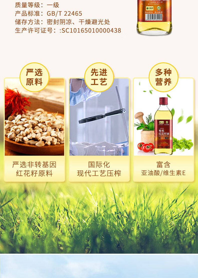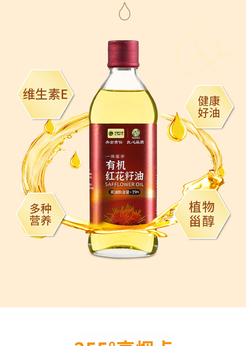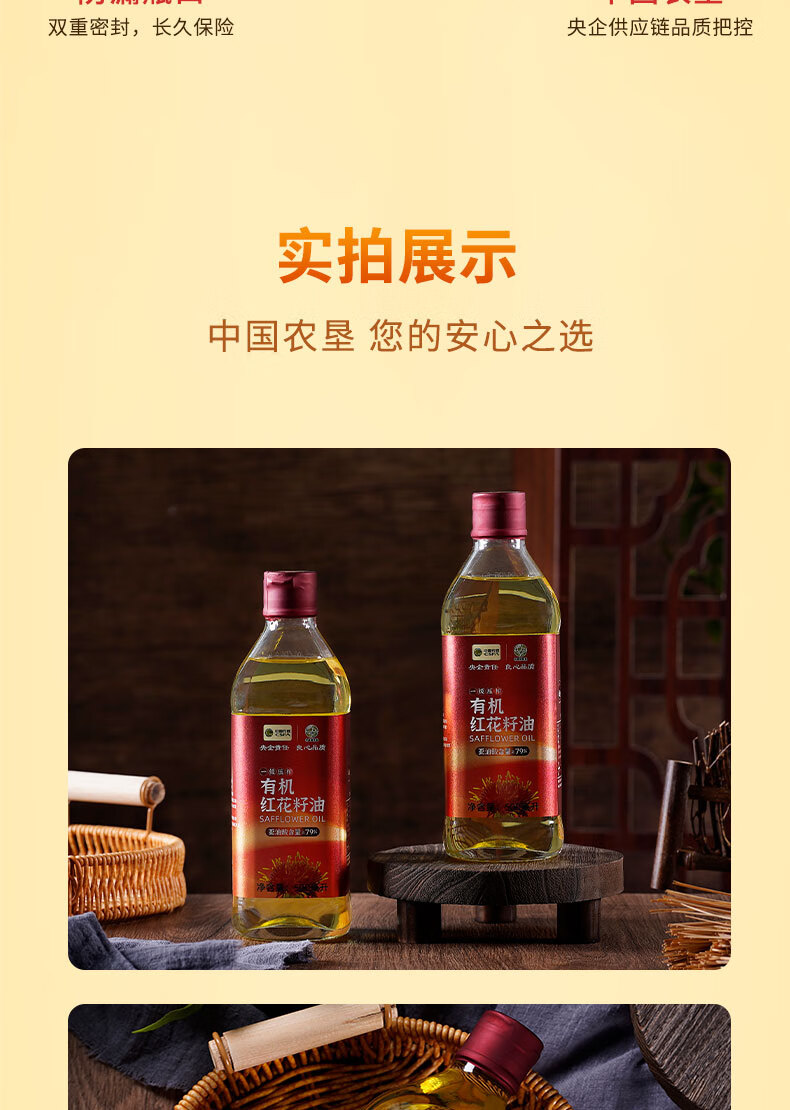 商品名称:'西北专供'【德邦配送】CSFA/中国农垦中垦飨味堂一 级压榨有机红花籽油500ml