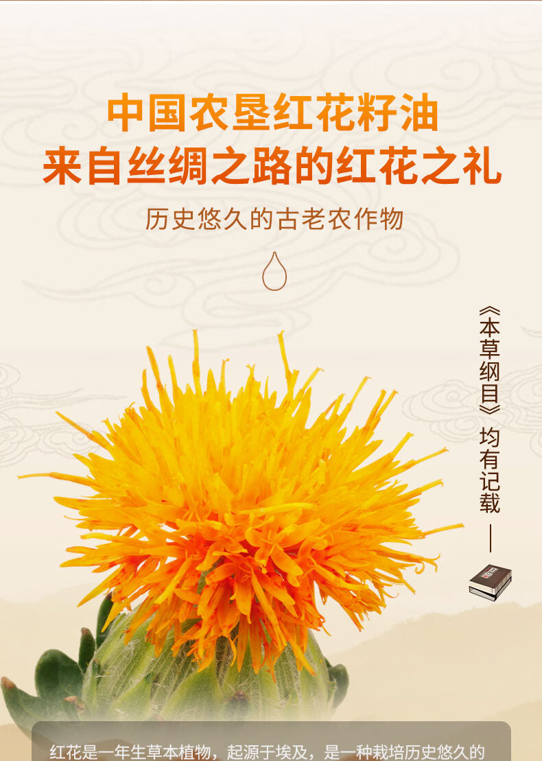 '西北专供'【德邦配送】CSFA/中国农垦中垦飨味堂一 级压榨有机红花籽油500ml