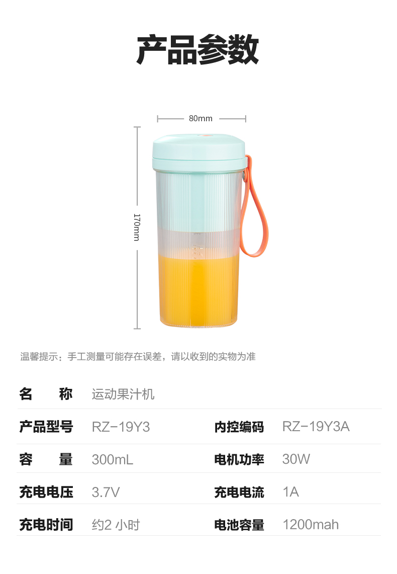 商品名称:Royalstar/荣事达300毫升运动果汁机RZ-19Y3A