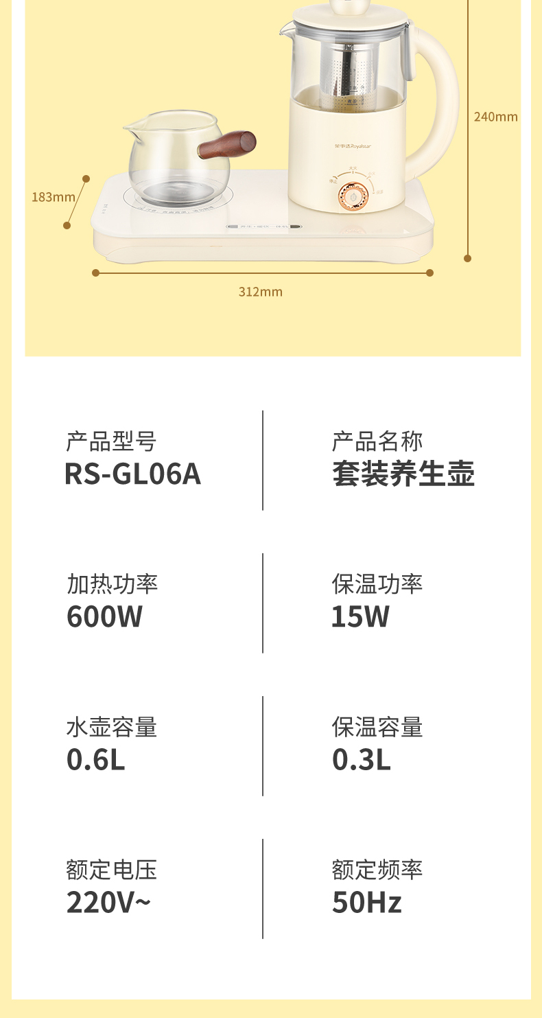 商品名称:Royalstar/荣事达600毫升套装养生壶RS-GL06A